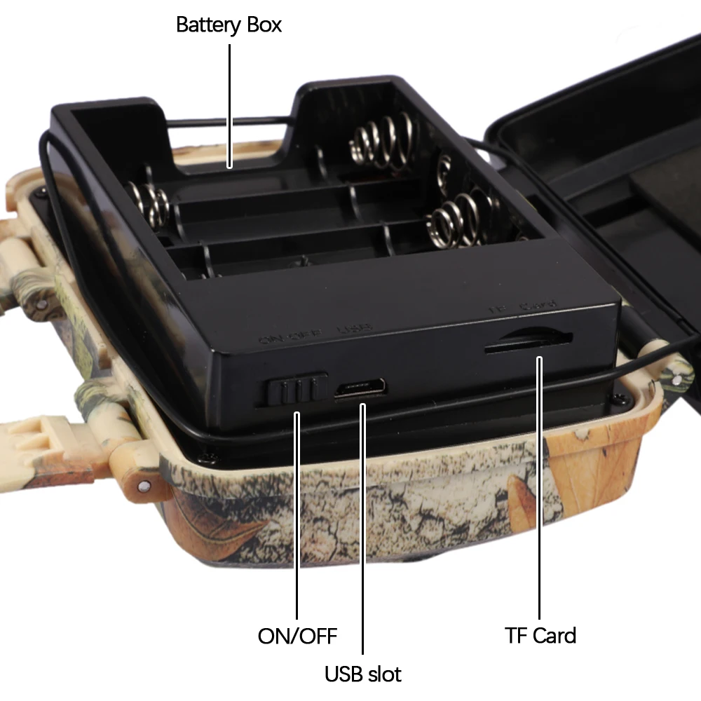-Мини водонепроницаемая камера: IP54 Водонепроницаемый и мини-дизайн, сверхнизкое энергопотребление операционной системы (в режиме ожидания, в поле до 8 месяцев жизни с 24 батареями AA), легко носить с собой, идеальная охотничья камера для наружного применения.-Разрешение 12MP/1080P Full HD: Отслеживание HD камер с ночным видением Full HD 1080P с четким и звуком и изображениями, идеальная камера для наружного наблюдения за дикой природой.-Впечатляющая времени съемки и пониженной яркости технология инфракрасного излучения: с 0,8 S супер быстрый запуск время, Высокочувствительный пассивный инфракрасный датчик движения, 15 м ИК флэш-памяти, 15 м ИК расстояние, автоматическое распознавание изображений, камеры никогда не пропустите никаких обнаруженных действий, независимо от дня и ночи!-Простота установки и использования: хранение фотографий и видео с помощью карты Micro SD (не входит в комплект); Поддержка до 32 Гб. Несколько простых в настройке режимов съемки позволяют записывать каждый захватывающий момент.-Компактный и портативный: этот трек и игровая камера поставляется с высокочувствительным PIR датчиком. Он может быть активирован в определенной области интересов, обнаруживая любое движение объектов или животных. Эта камера имеет компактный размер и легкий вес, она не только широко используется для игр на открытом воздухе и наблюдения за дикой природой, но и популярна в домашней и офисной безопасности.