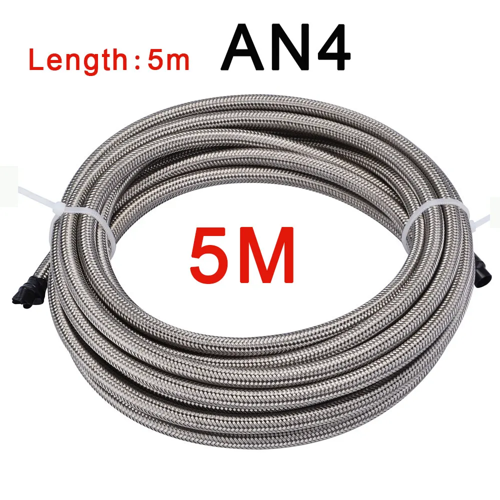 Гоночный шланг длиной 5 м AN3 AN4 AN6 AN8 AN10 304, тормозной шланг из нержавеющей стали с оплеткой из ПТФЭ, топливная маслопровод, шланг для масляного радиатора