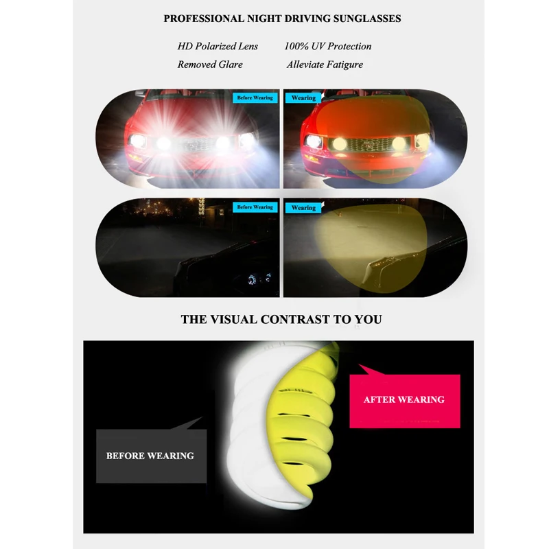Очки ночного видения AOWEAR мужские, алюминиевые, желтые линзы, Пол...