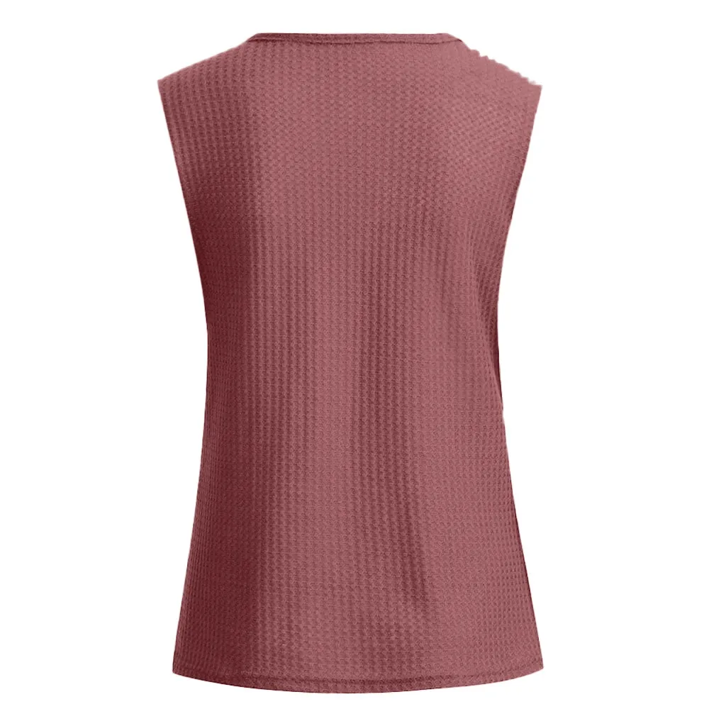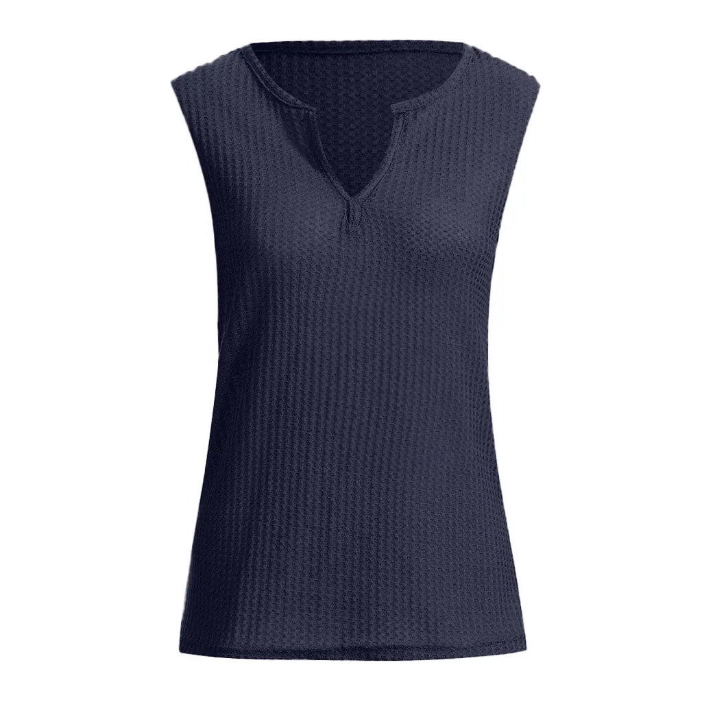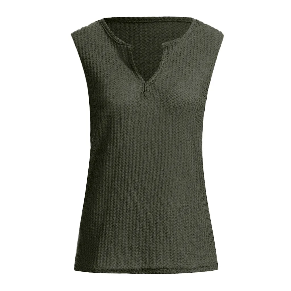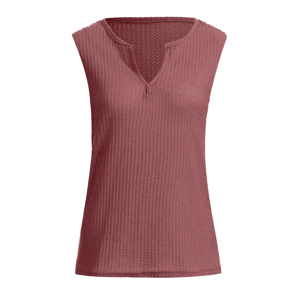 Блузка женская Повседневная без рукавов, модная однотонная трикотажная Свободная рубашка с V-образным вырезом, лето