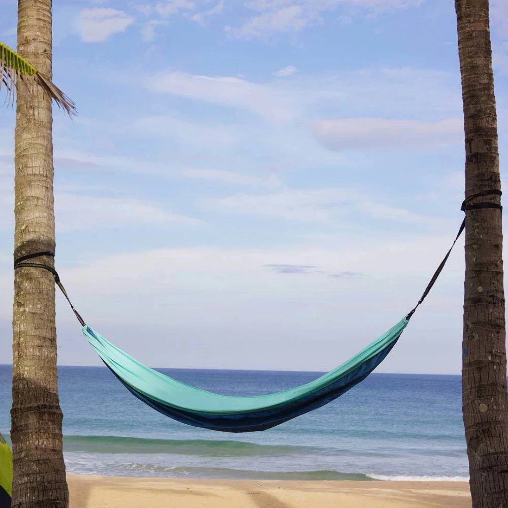 Легкая фиксация, просто закрепите гамак двумя связывающими завязками и привяжите веревку к деревьям или полюсам.