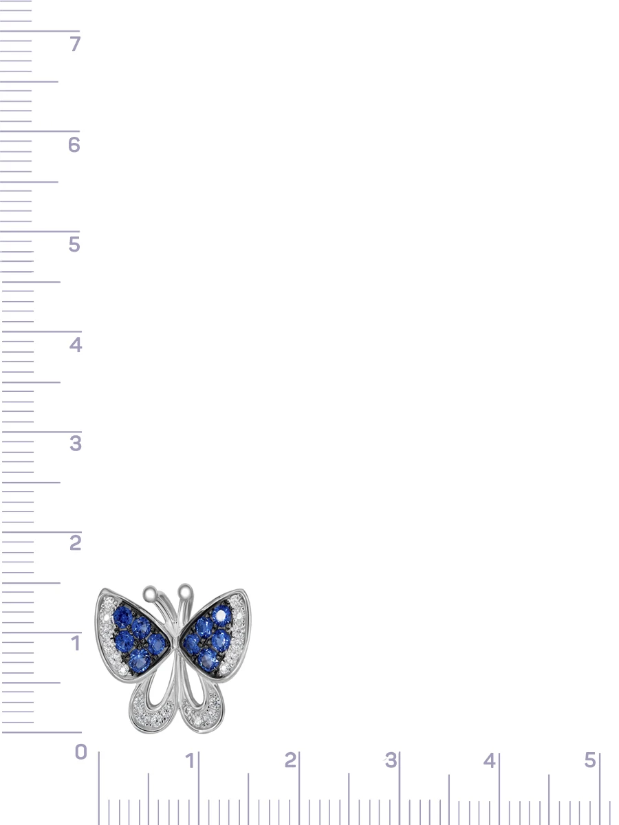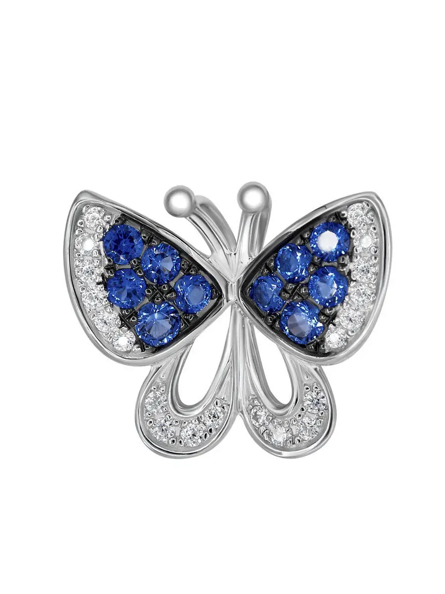 Изящный подвес в форме бабочки, выполнен из серебра 925 пробы со вставкой наносапфир и кубический цирконий. Покрытие - черный и белый родий.