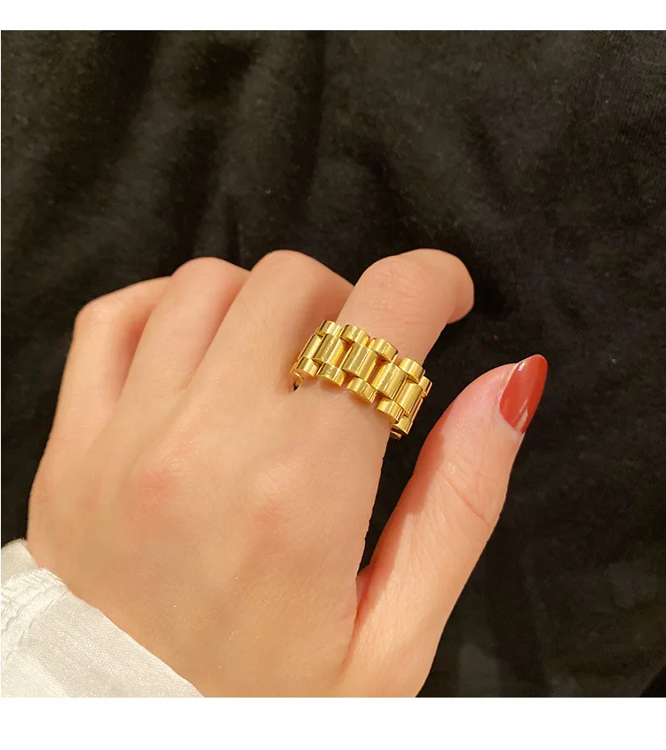 Женское позолоченное кольцо из нержавеющей стали в стиле хип-хоп