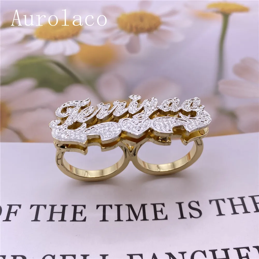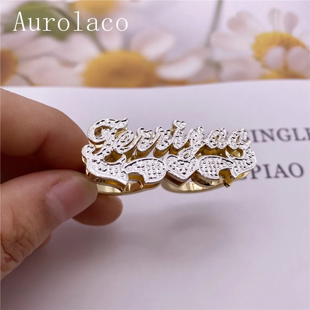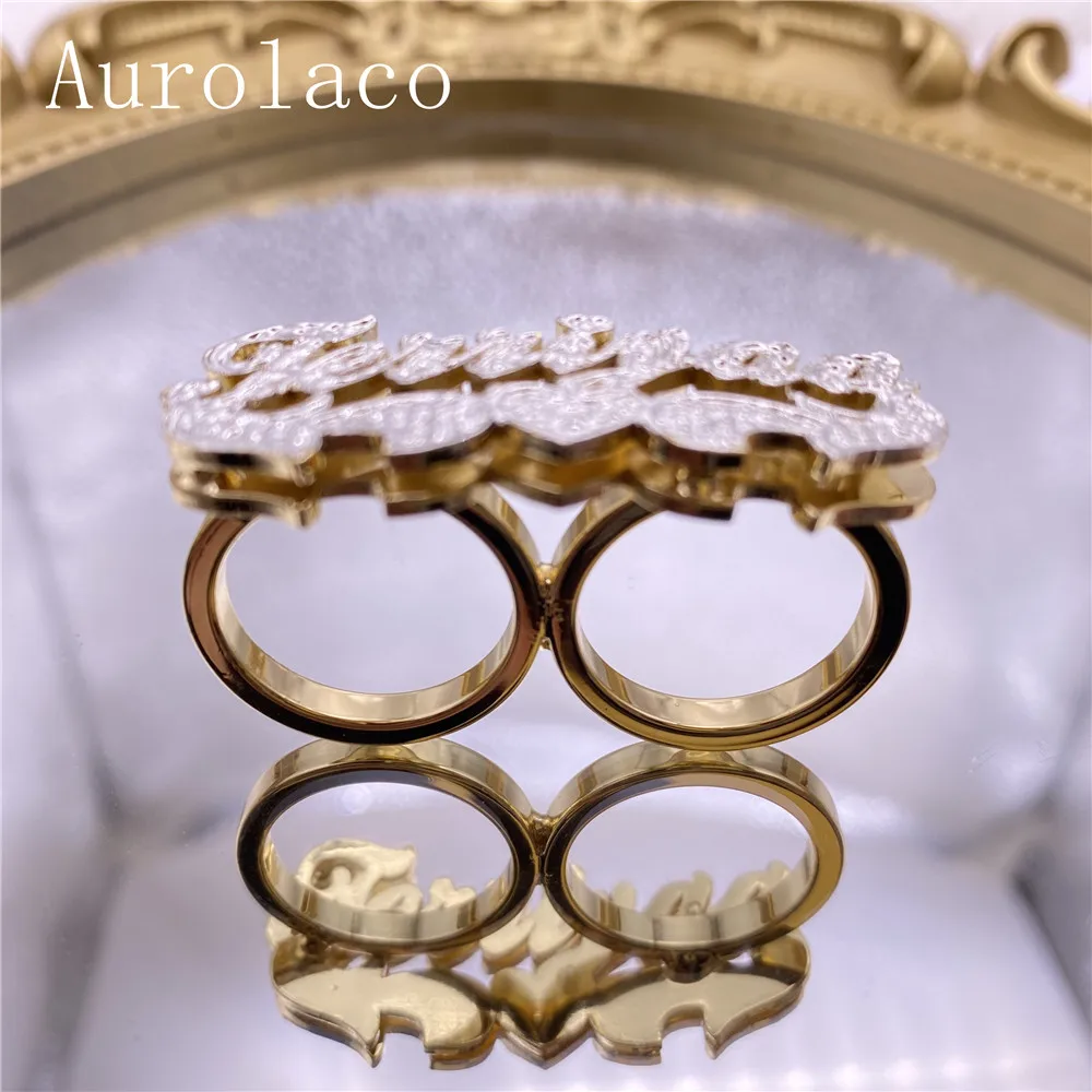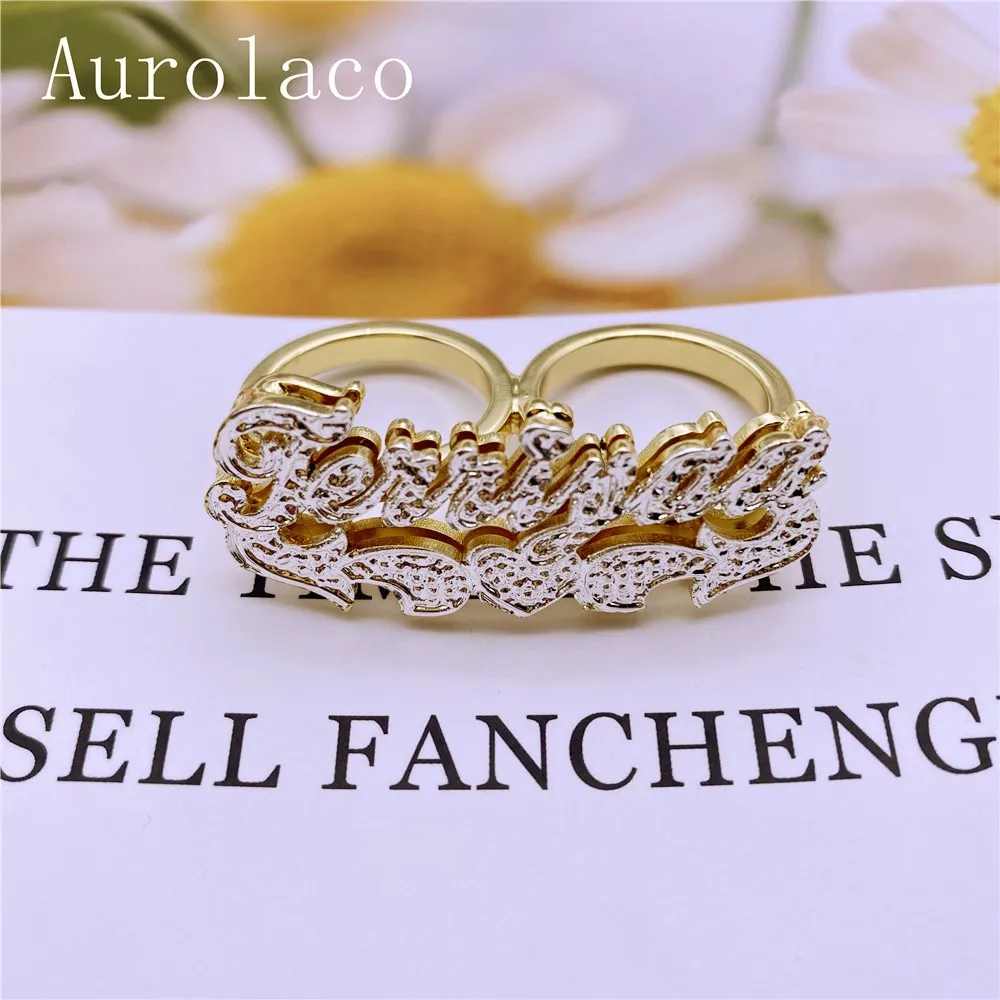 Кольцо с двумя перстнями AurolaCo, с резным именем, с инициалом, позолоченное 18 карат, для женщин, подарки