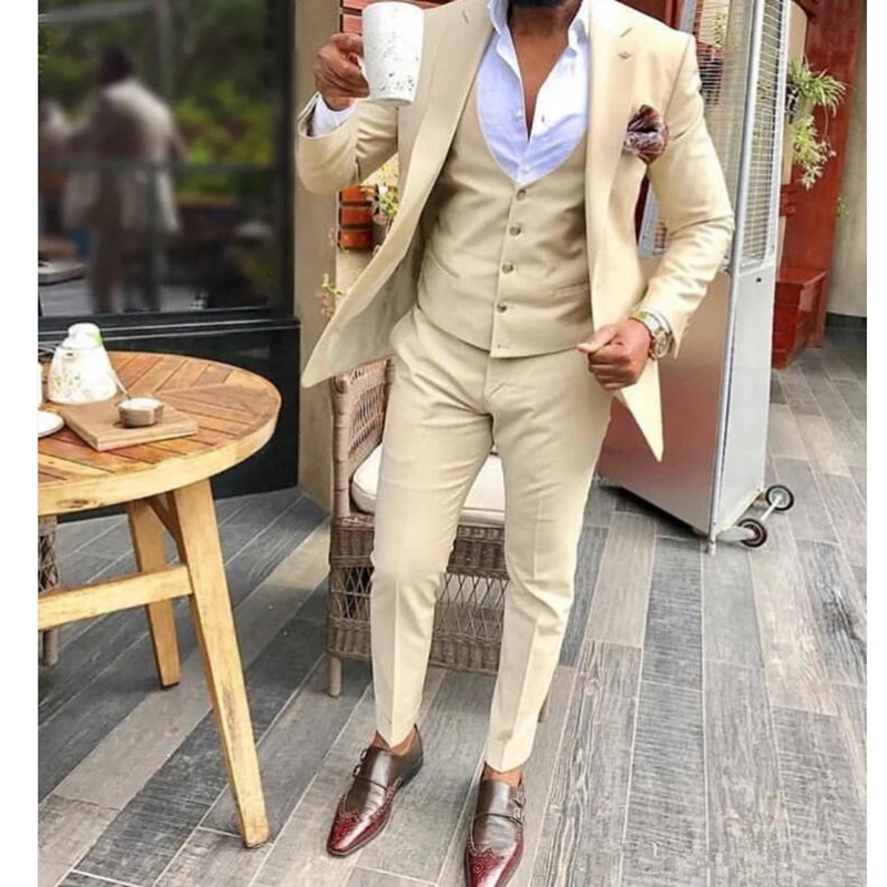 Роскошные итальянские Бежевые мужские костюмы 2020, классический ст...