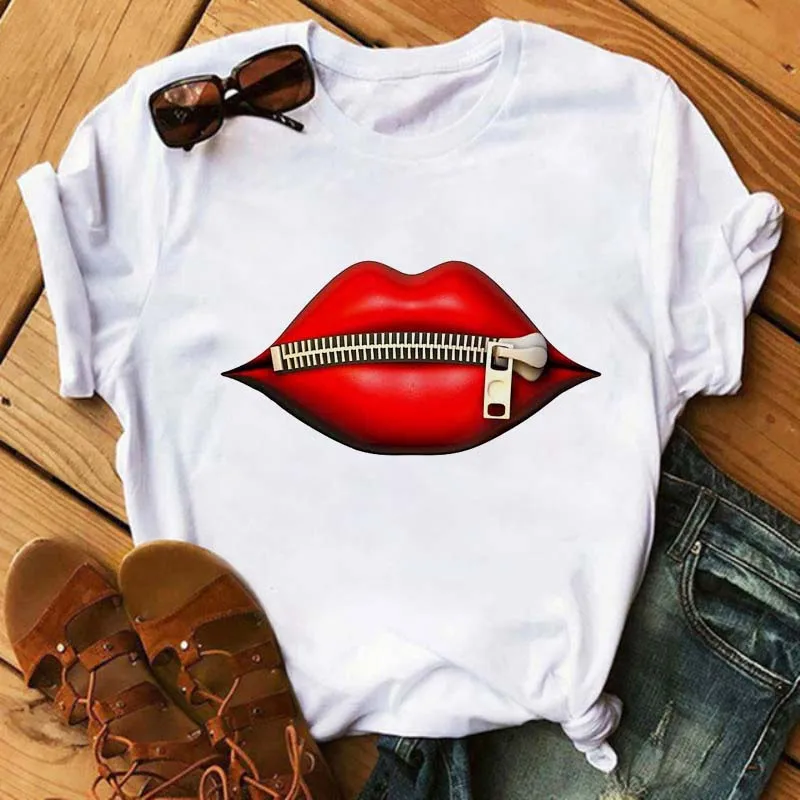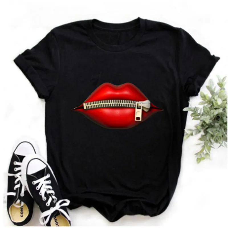 Футболка женская с красным ртом и губами, смешная леопардовая рубашка для девушек, топ с графическим принтом, футболка в стиле Харадзюку, лето 2021