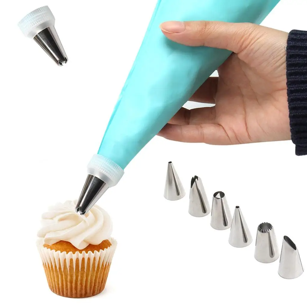 8 шт.компл. силиконовый кондитерский мешок для айсинга и крема + 6 элементов из нержавеющей стали