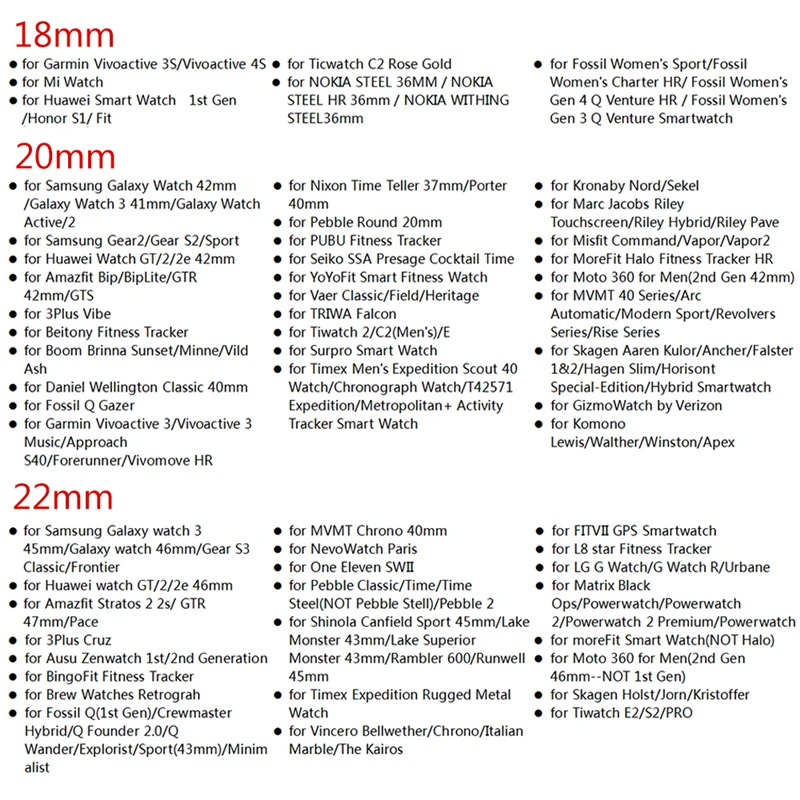 Ширина ремешка 20 мм Подходит для: