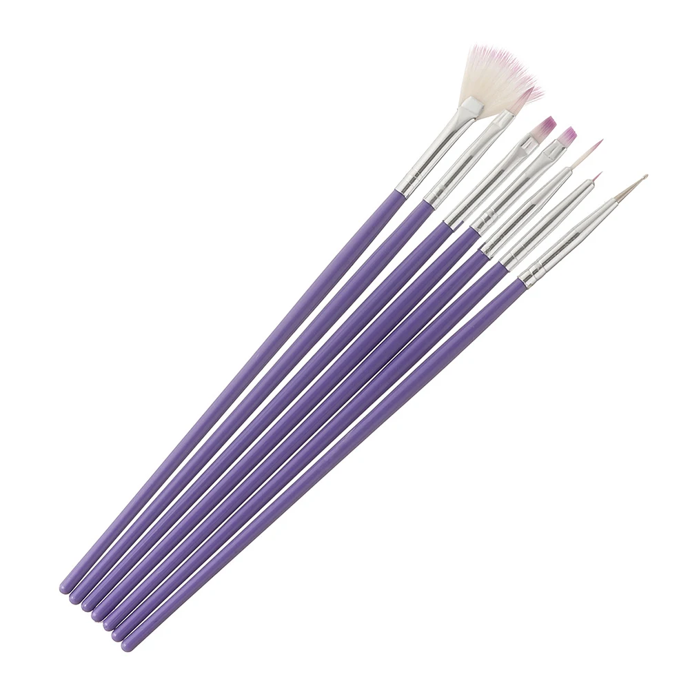 7 шт., кисти для рисования на ногтях с фиолетовой ручкой