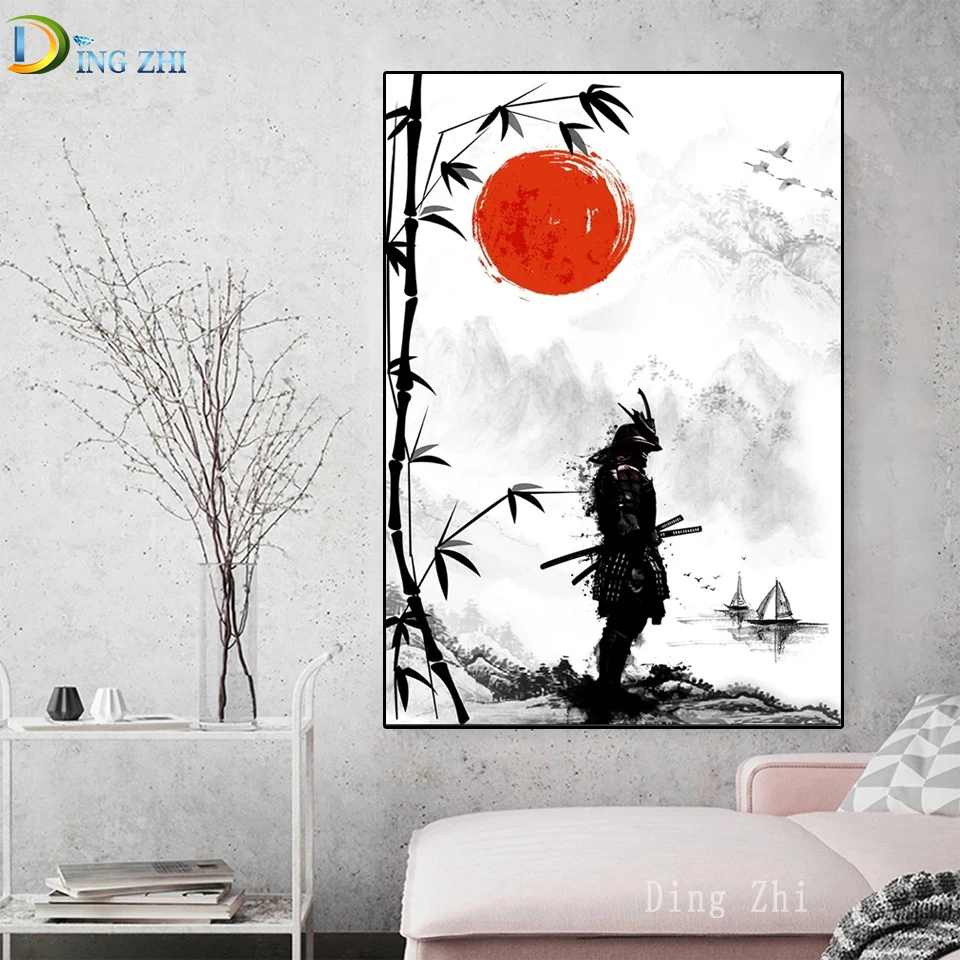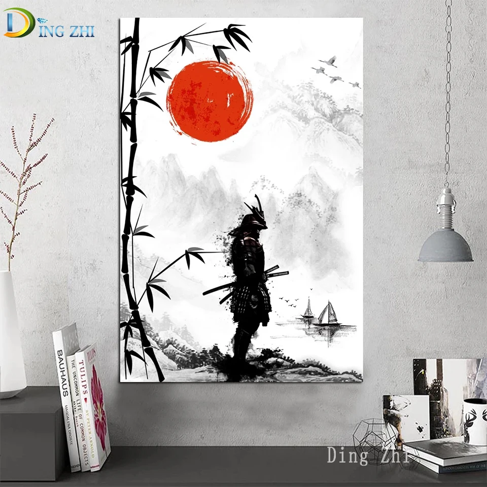 Японские самураи «сделай сам», алмазная живопись, вышивка крестиком, чернила, бамбук 5D, домашний декор, алмазная вышивка, вышивка бисером, квадратные круглые наборы ручной работы