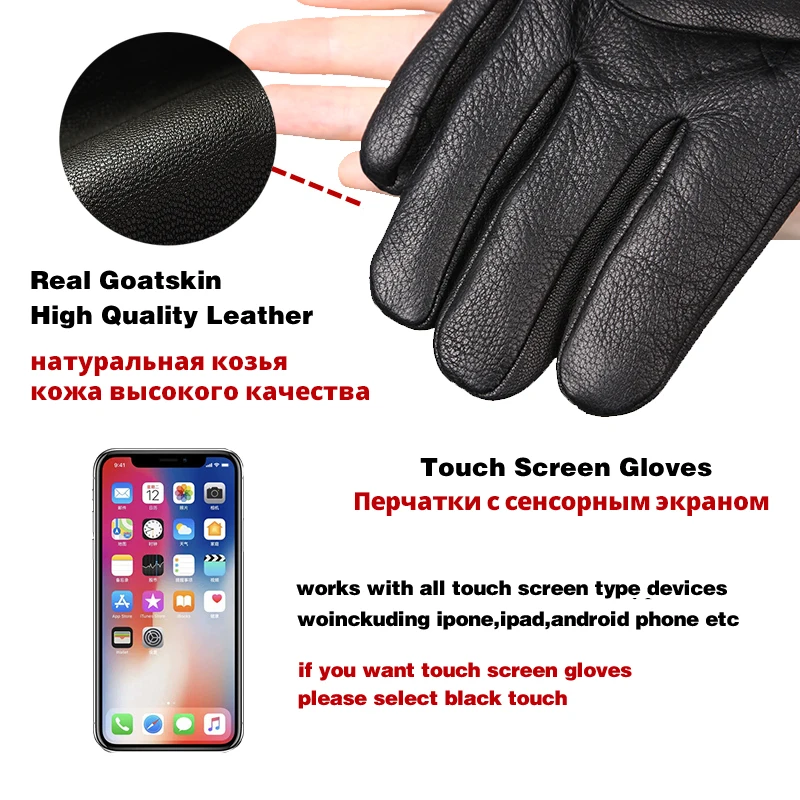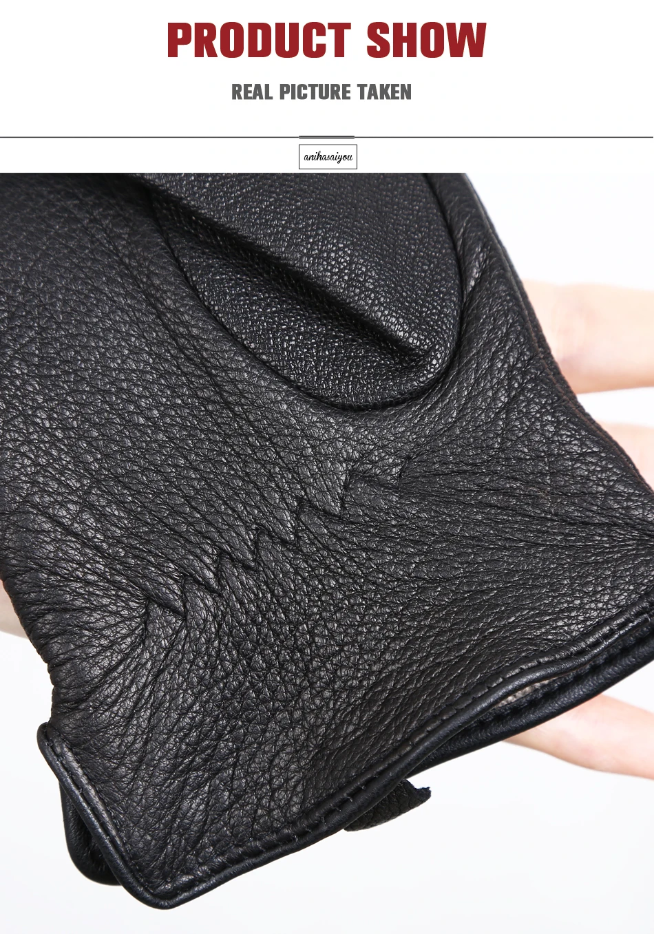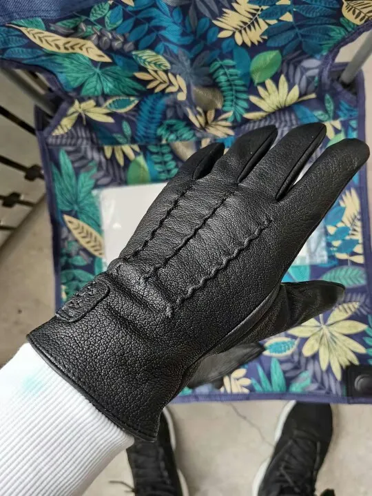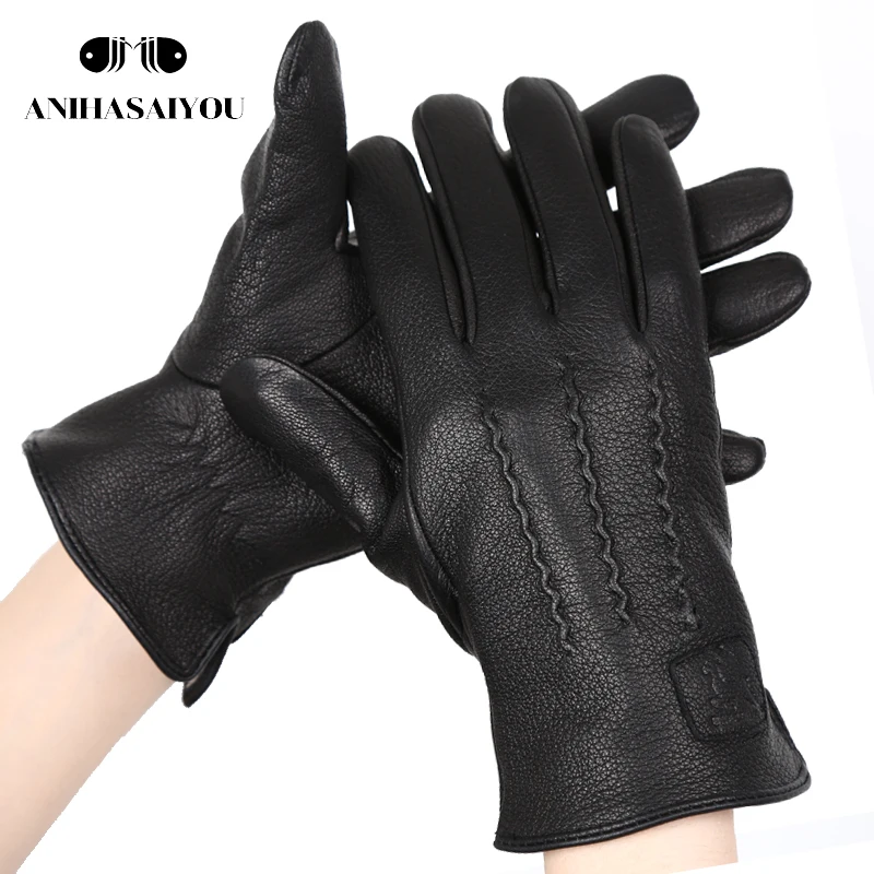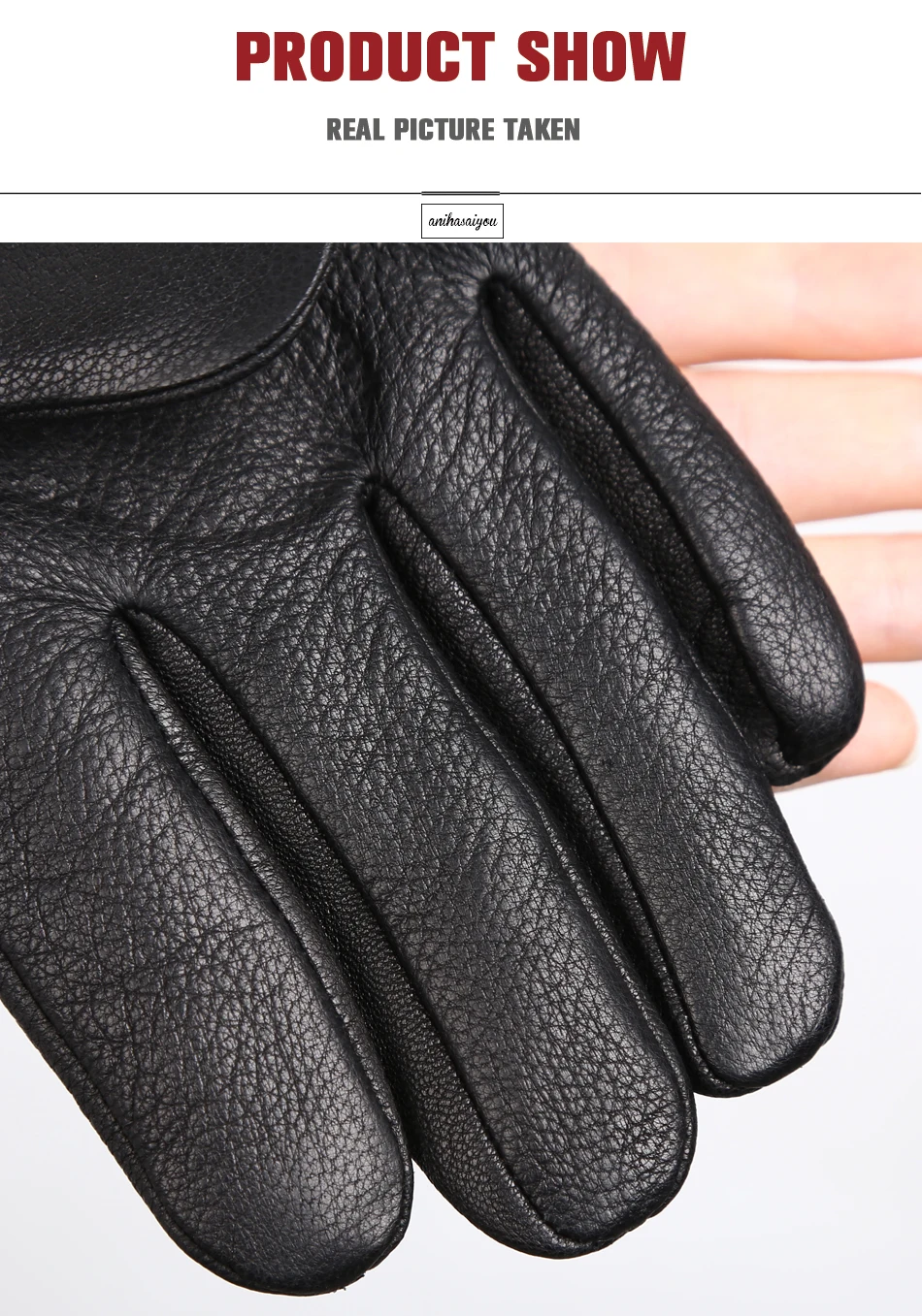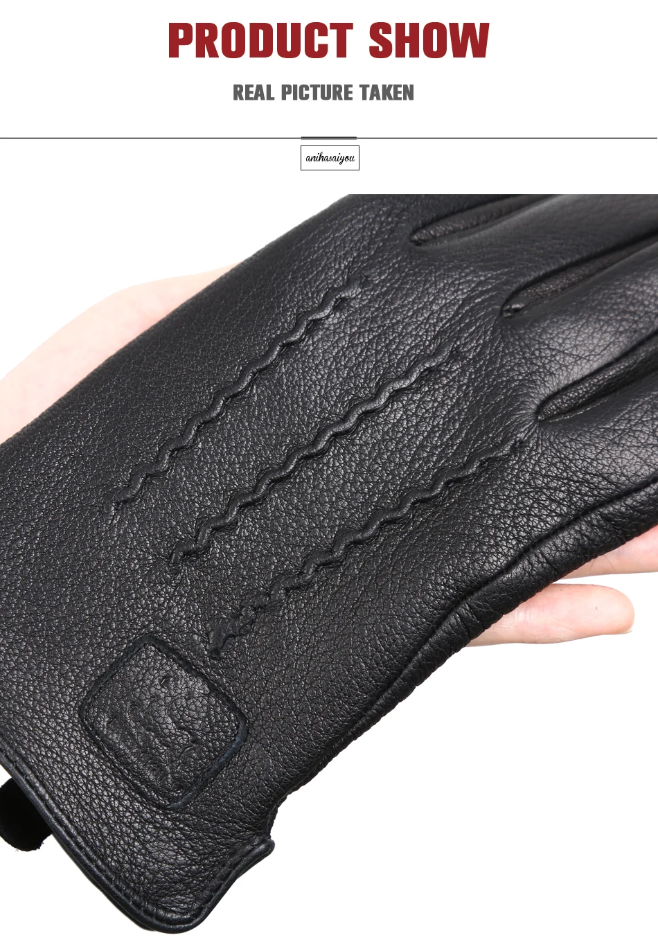 2021 зимние мужские перчатки, кожаные перчатки с оленем мужские, мягкие с теплой шерстяной подкладкой 70% черные кожаные перчатки мужские Швейные дизайнерские-8001N
