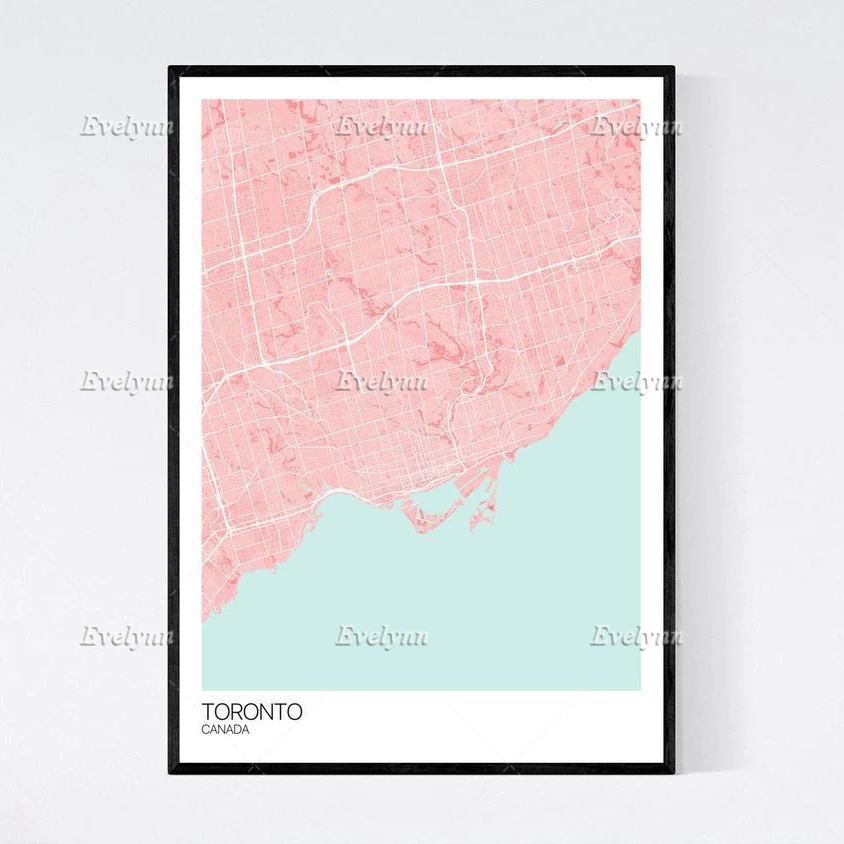 Торонто, Канада Карта Печать-много цветов-Скандивинтажноенастенное искусство холст живопись модульные картины Современный Декор для дома плакаты