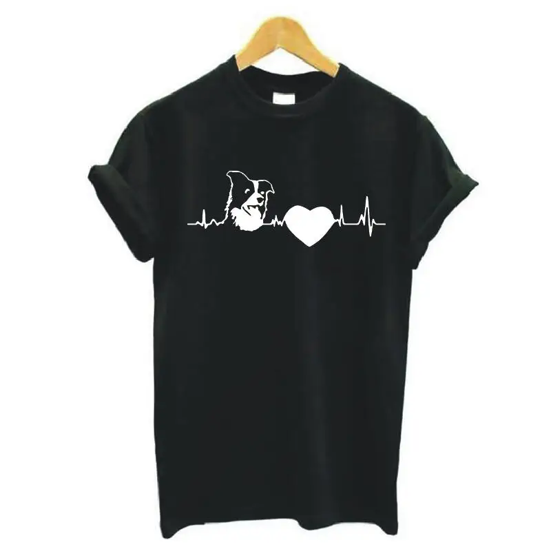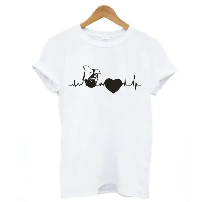 Летние шорты с длинными рукавами футболка Femme размера плюс колли "кардиограмма сердца", Футболка с коротким рукавом, женские топы, Собака Мама Camiseta Mujer