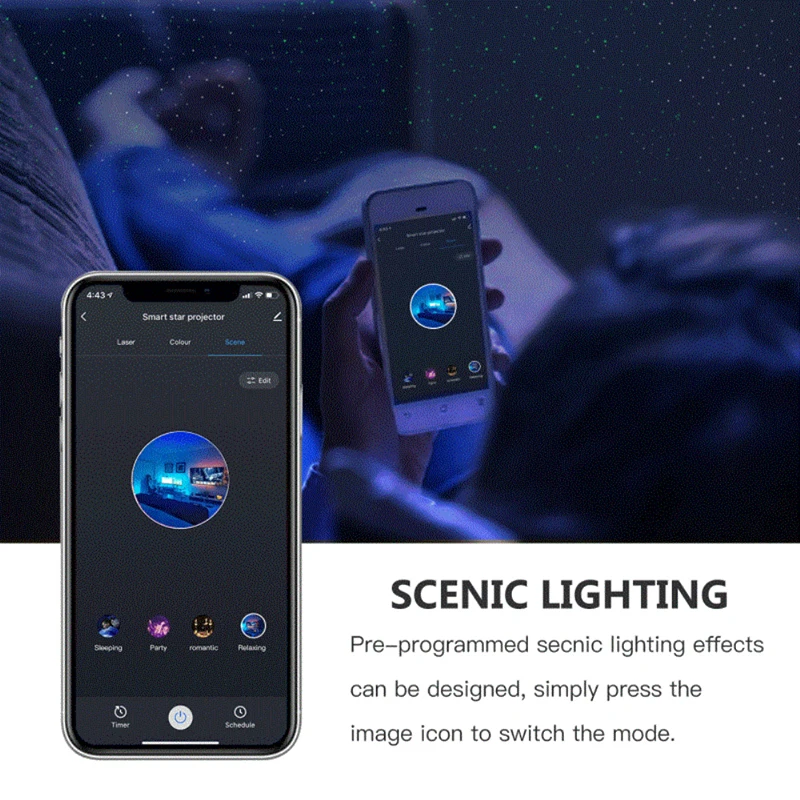 2. Пульт дистанционного управления и музыка: вам больше не придется беспокоиться о том, чтобы включить или выключить кровать или диван, чтобы включить или выключить Ночной светильник. Пульт дистанционного управления также может управлять проекционной лампой звезды, цветными огнями, регулировать яркость, свободно включать/выключать свет, менять режим освещения, музыку и песни, таймер.