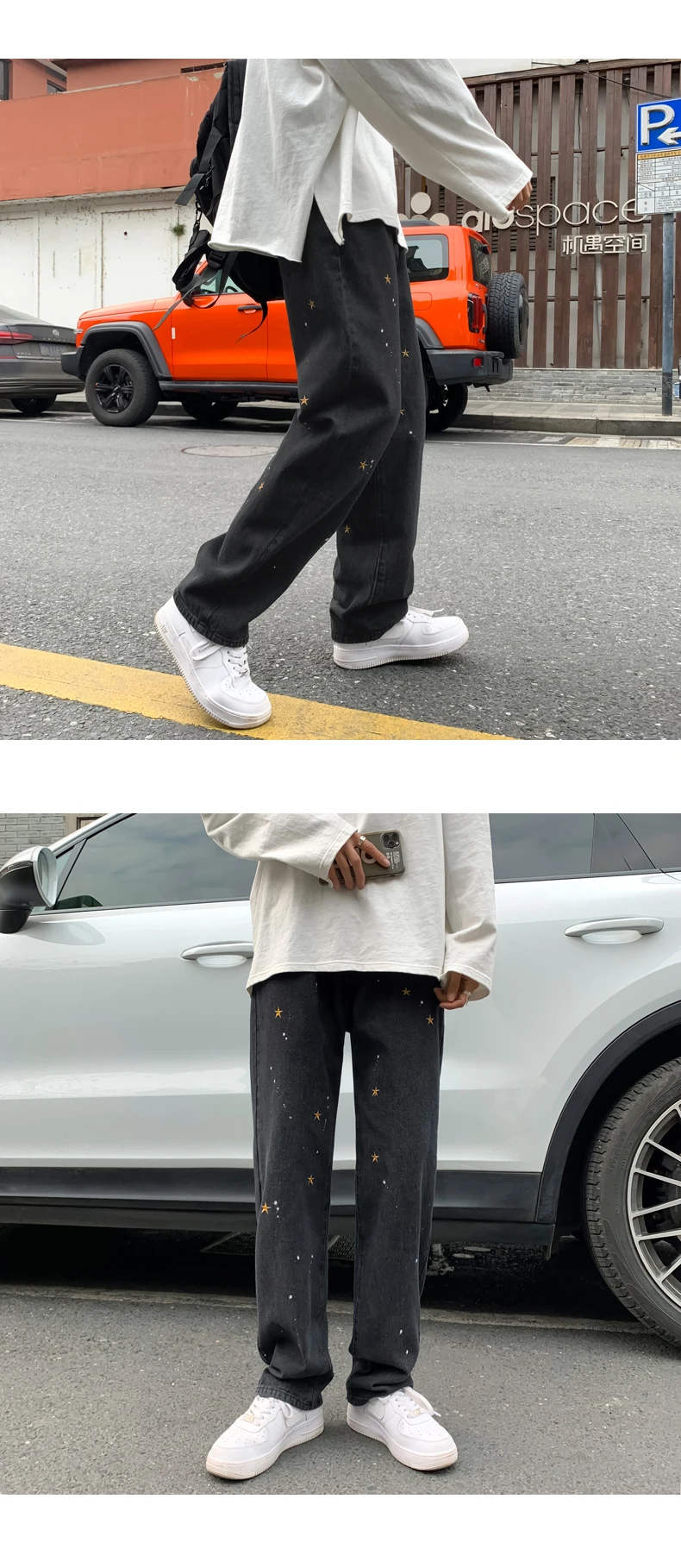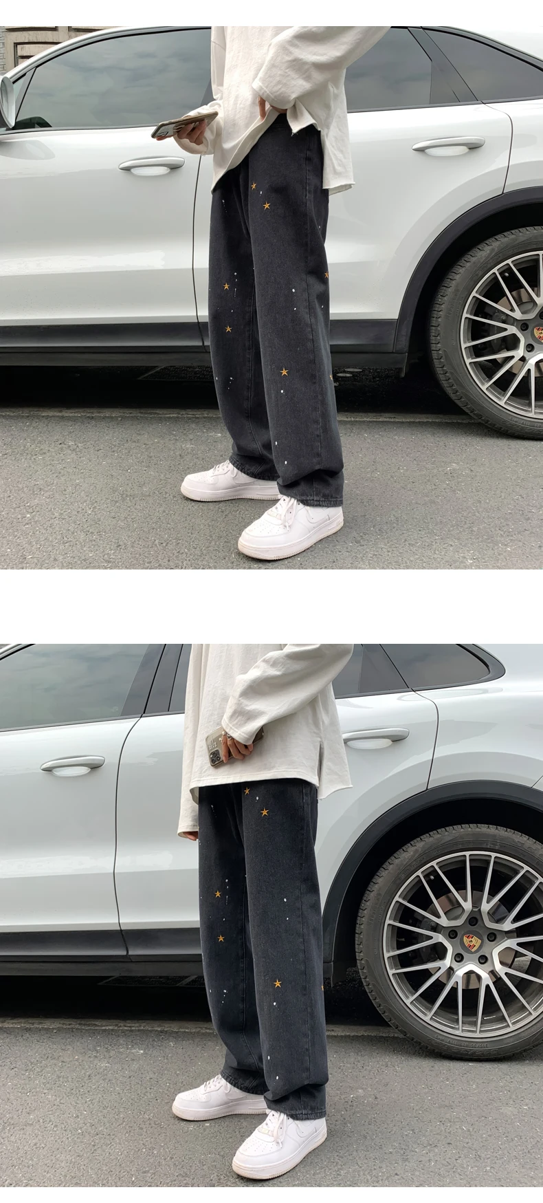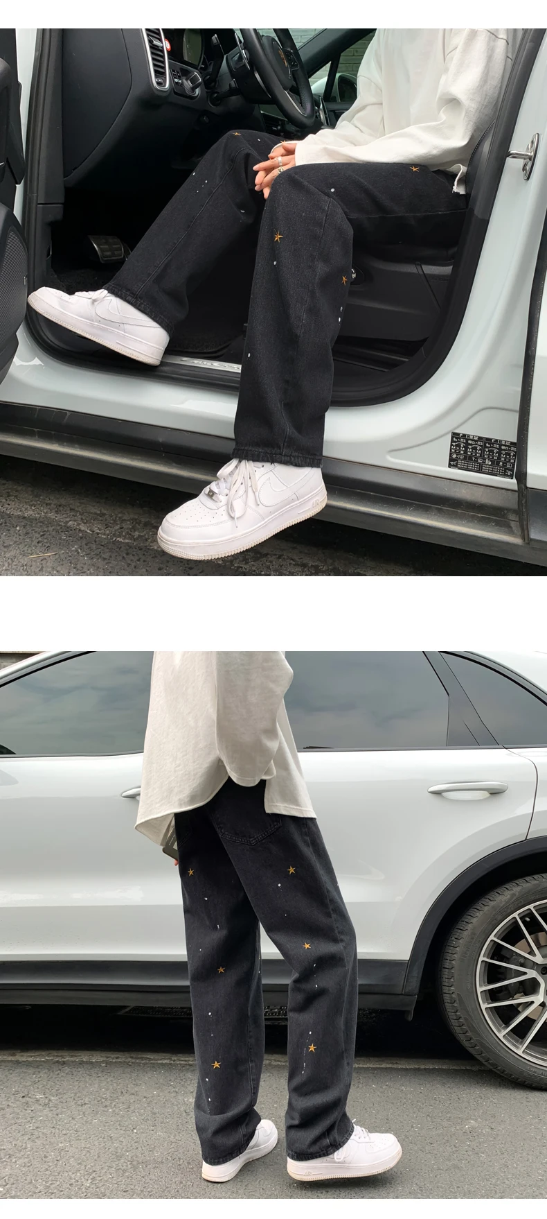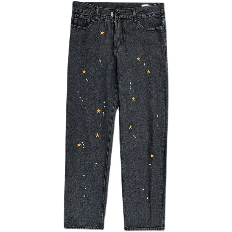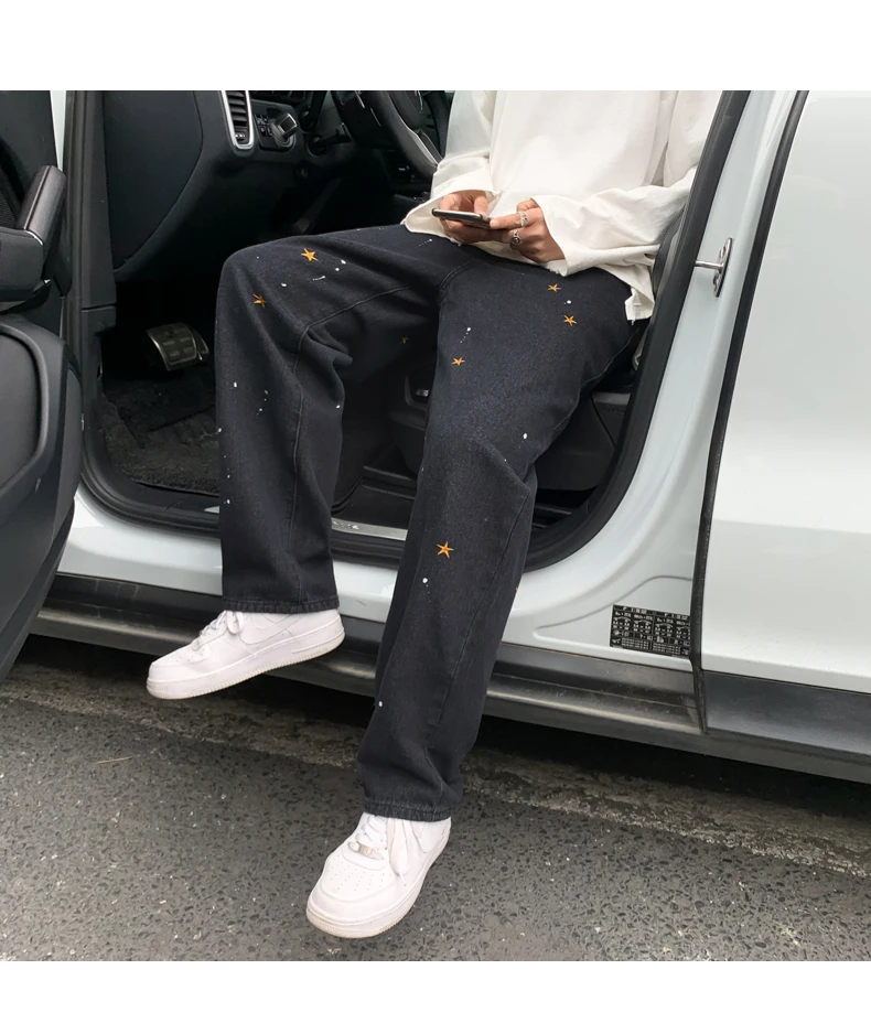 Черные джинсы с вышивкой в виде звезд, мужские Модные прямые свободные уличные штаны в стиле хип-хоп, широкие брюки большого размера, новинка 2021