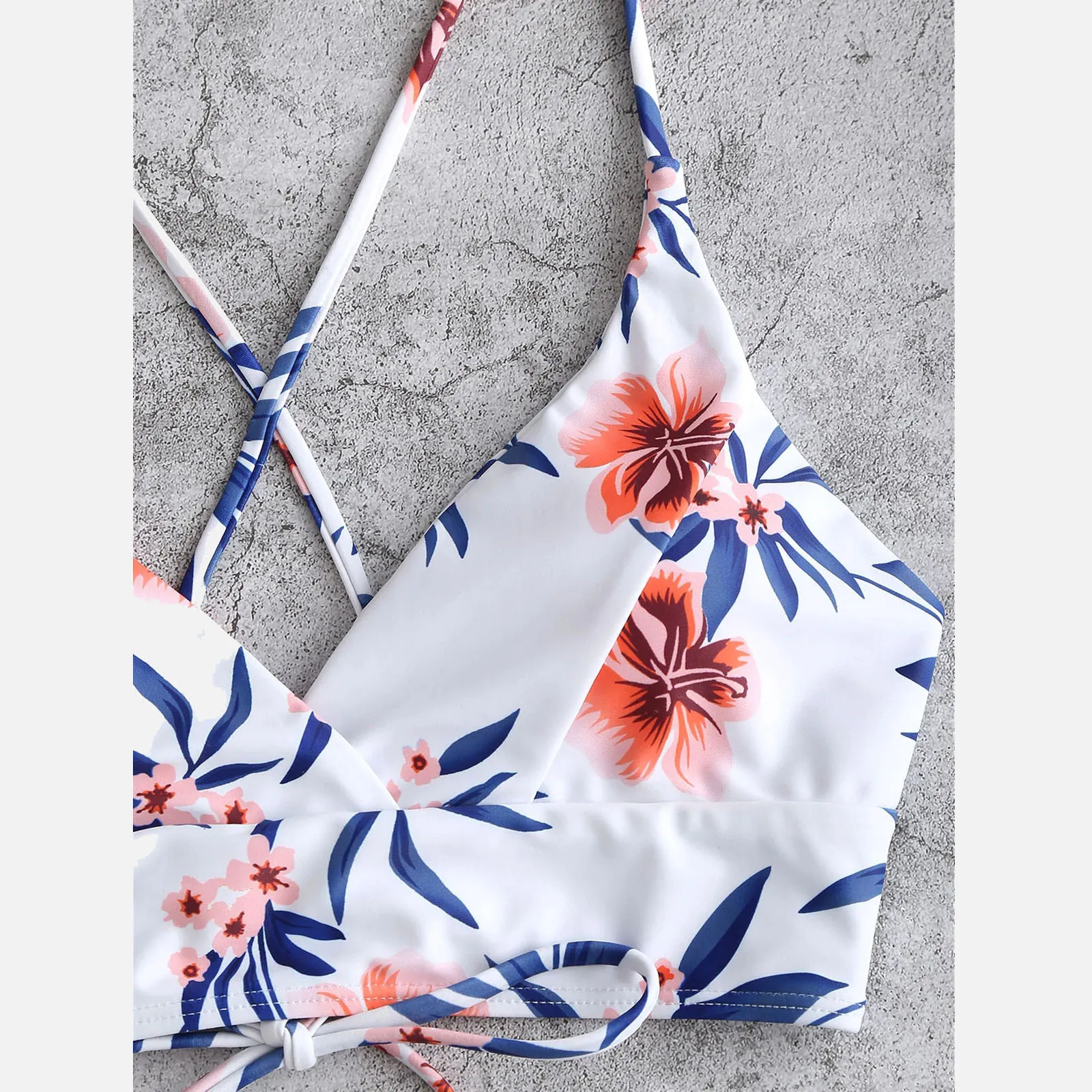Женский раздельный купальник на шнуровке, с цветочным принтом