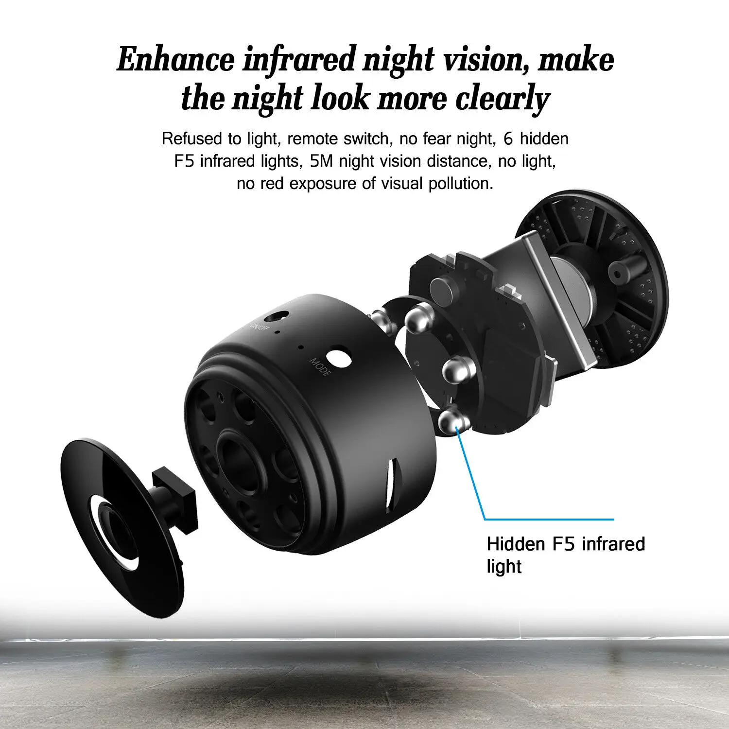 Особенности1. Широкий угол обзора, никогда не пропустите ни одной деталиС углом обзора 150 градусов камера обеспечивает широкий диапазон обзора в вашей комнате. Это позволяет вам знать, что каждое движение произошло в вашем доме в любое время в любом месте.2. 1080P Full приносит вам различный опыт. Эта беспроводная ip-камера позволяет просматривать в режиме реального времени то, что происходит в вашем доме или офисе, даже когда вы находитесь в отпуске или быстрой деловой поездке. Удаленный просмотр можно получить через приложение (маленькие звезды) с помощью смартфонов iOS и Android.3. Эта беспроводная ip-камера может работать по Wi-Fi (2,4 ГГц только Wi-Fi) или нет Wi-Fi. Когда он работает без WiFi, вставьте tf-карту (tf-карта не входит в комплект) и включите, камера Записывает и сохраняет видеофайлы на tf-карту (tf-карта не входит в комплект).4. Ночное видение, вы можете видеть вещи в темноте5. Эта маленькая ванная комната имеет встроенный Магнит, может хорошо работать с любым железным материалом, легко помещается в любом месте. Эта маленькая камера с жестким зарядным кабелем и волшебным основанием, при зарядке во время записи, вы можете вручную повернуть угол записи на 360 градусов.Как использоватьЗагрузите приложение (маленькие звезды) в APP Store или Google Play.Нажмите кнопку ВКЛ/ВЫКЛ около 3 секунд, чтобы включить камеру.Найдите и Подключите камеру Wi-Fi hotspot в настройках WLAN вашего телефона. Или сканирования камеры QR код и подключите ваш дом 2,4 ГГц Wi-Fi в приложении настройки устройства-Wi-Fi, конфиг.Смотрите видео в реальном времени.Если вы хотите сохранить видео, отформатируйте карту micro SD перед использованием.Характеристики:Материал: алюминиевый сплавРазмеры: 5*4,5*4,5 смЦвет: черныйКоэффициент разрешения: 1280*1080PФормат видео: ASFТип карты памяти: поддержка tf-карты до 128 ГБ, (TF не входит в комплект)Сжатый Формат: H.264Поддержка приложения: Android/iOSШирокий угол 150 °Время работы батареи: 60 минутПосылка включает в себя: (tf-карта не входит в комплект)1 беспроводная камера Wi-Fi1 x Магнитный кронштейн1 х металлическая вкладка1 х USB кабелиРуководство по эксплуатации-1 шт.
