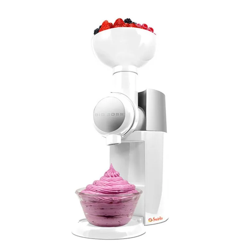 Больше не выбрасывайте дополнительные фрукты! Заморозьте его и превратите в здоровый замороженный десерт. Большой Босс Swirlio превращает ваши любимые фрукты в мягкий замороженный десерт в считанные секунды! Очистите, нарежьте и заморозьте фрукты-вставьте их в желоб и вуалю, вам подадут вкусный и полезный десерт! Используйте только ингредиенты, которые вы считаете лучшими для вас и вашей семьи.