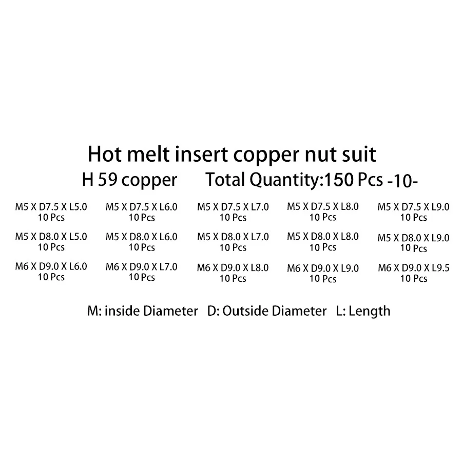 Набор латунных инкрустированных горячим расплавом гаек, набор термо...