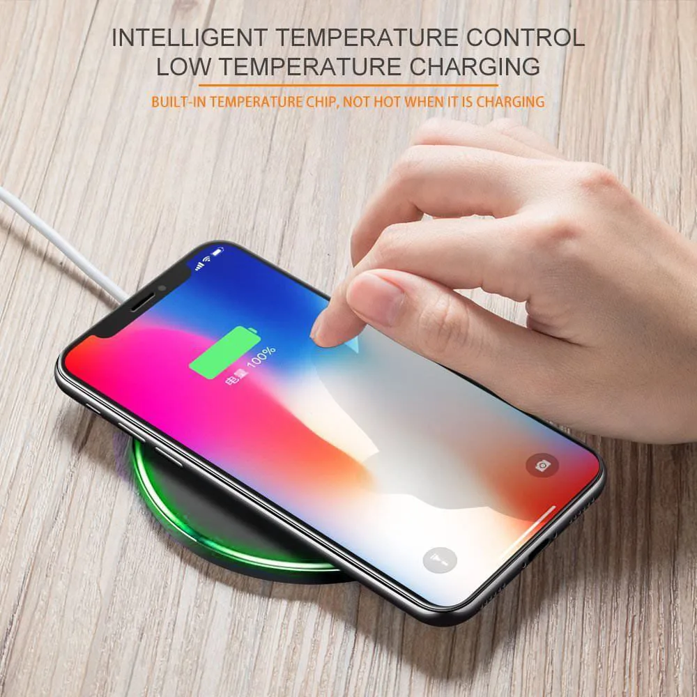 Qi металлическое Беспроводное зарядное устройство 10 Вт для iPhone 12 12 Pro Max 11 11Pro X XR XS Max, быстрая Беспроводная зарядка для Samsung S10 S9 Note 8 9