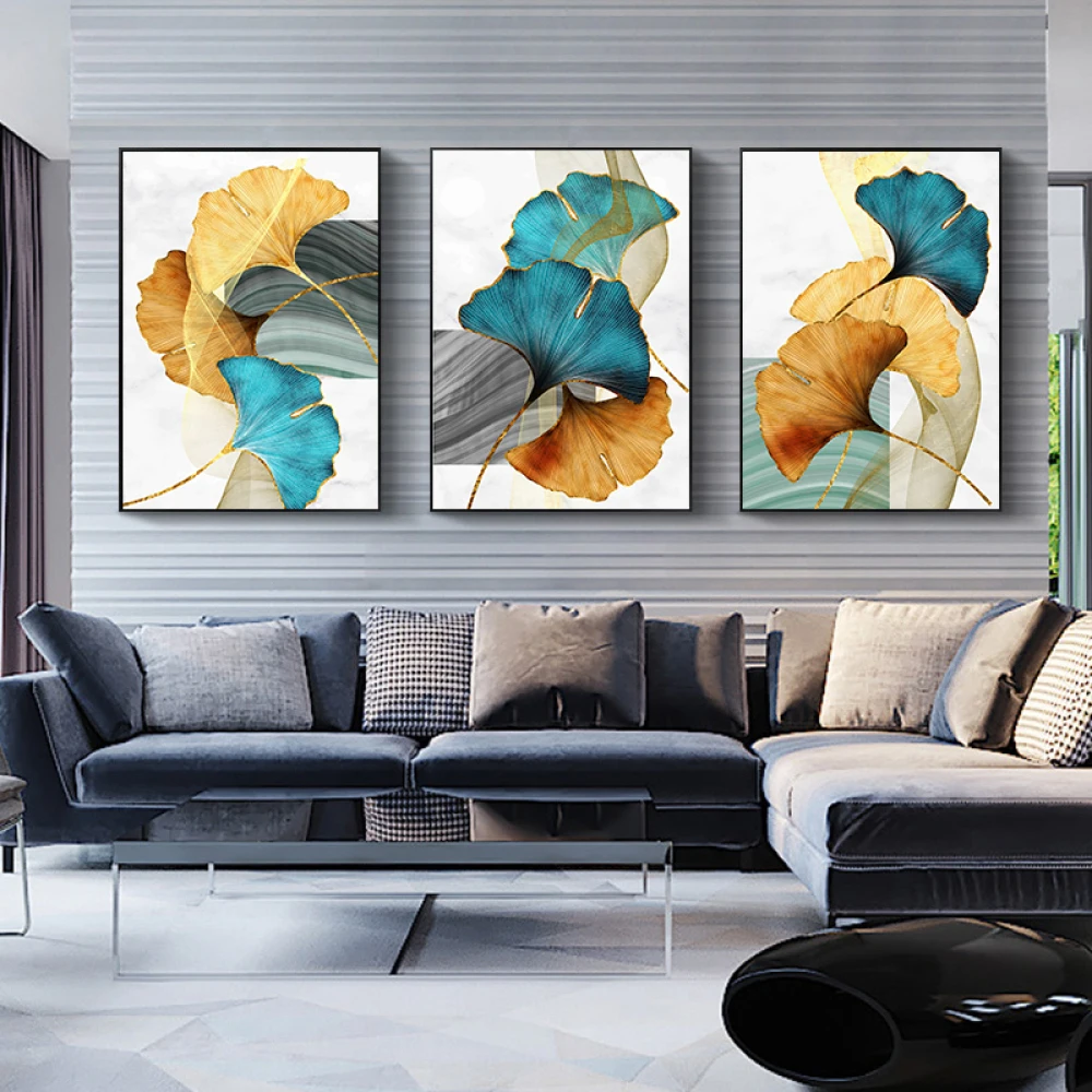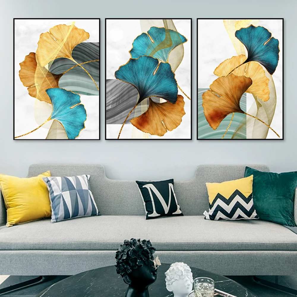 Абстрактная Картина на холсте с изображением золотых листьев гинкго...