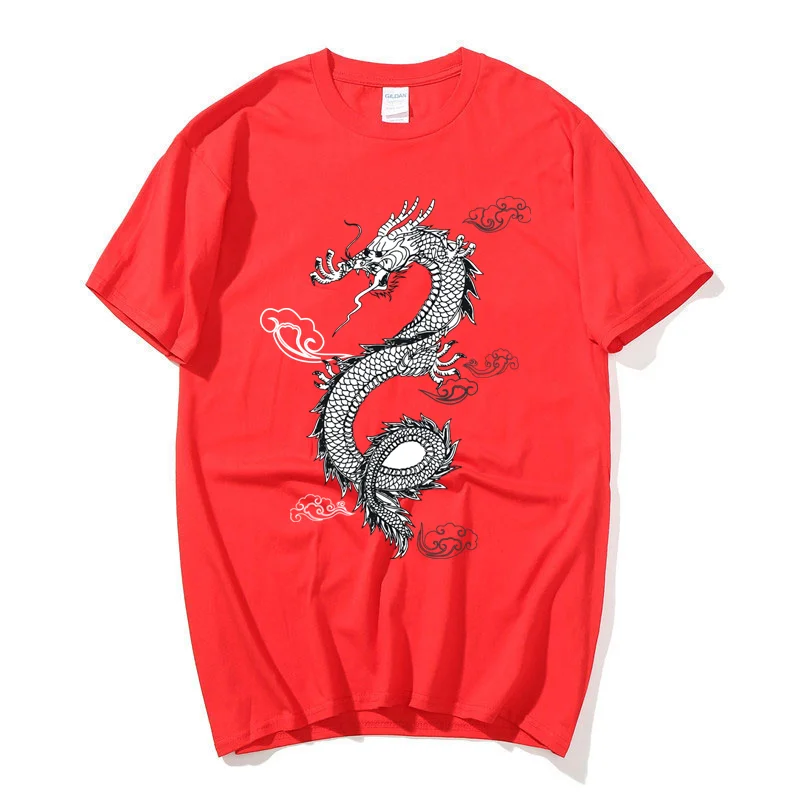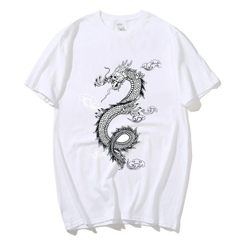Летняя футболка для мужчин и женщин, топы с драконом в стиле Харадзюку, футболки в китайском стиле, футболка оверсайз, модная футболка в стиле хип-хоп, одежда с коротким рукавом