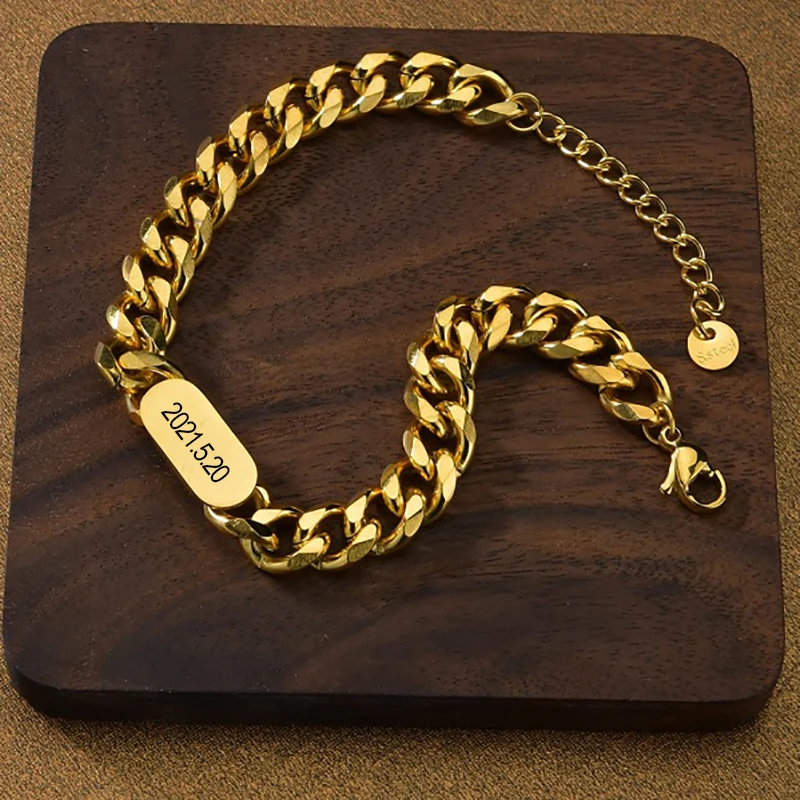 Мужской браслет-цепочка из нержавеющей стали с гравировкой имени и датой