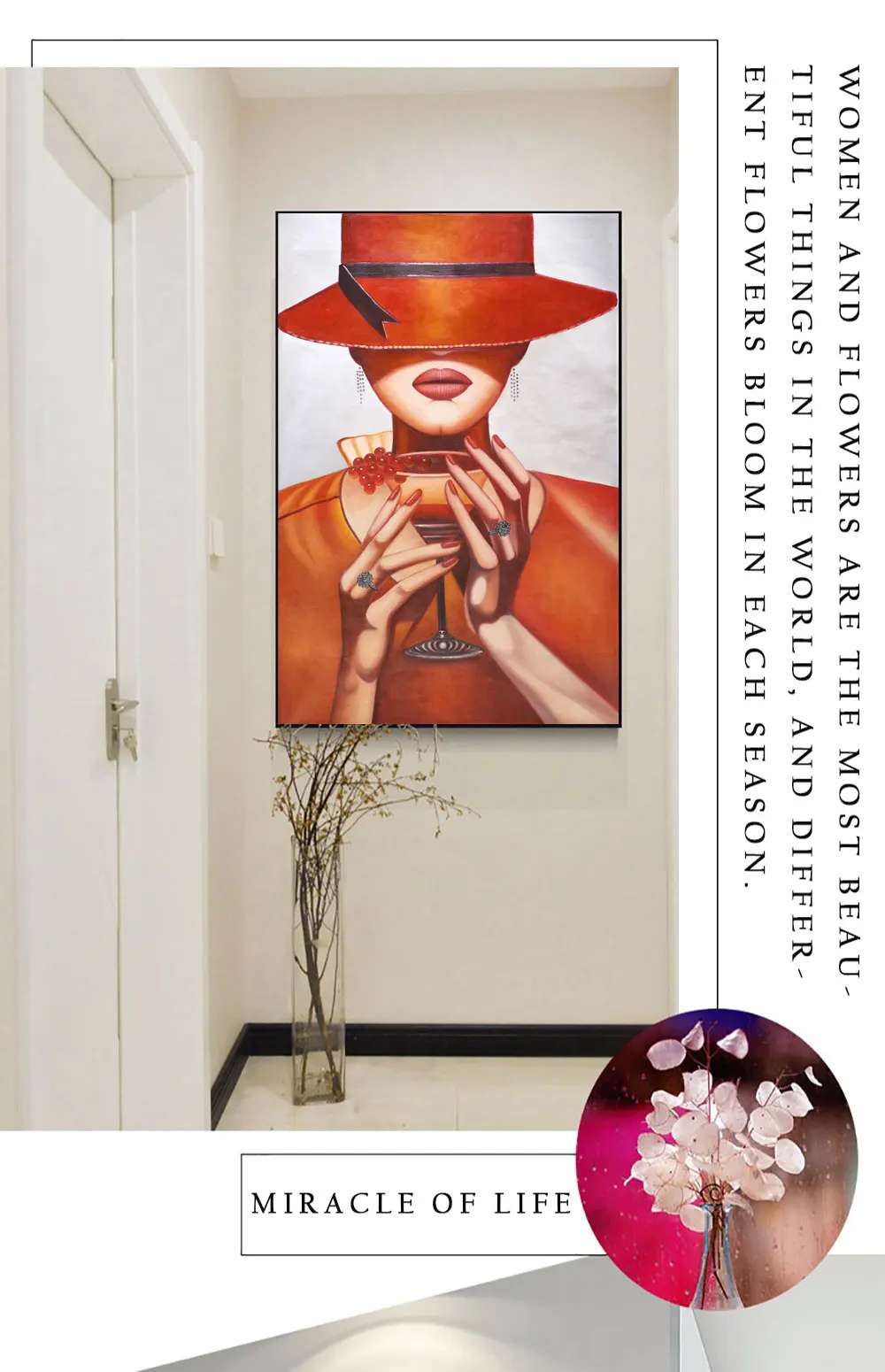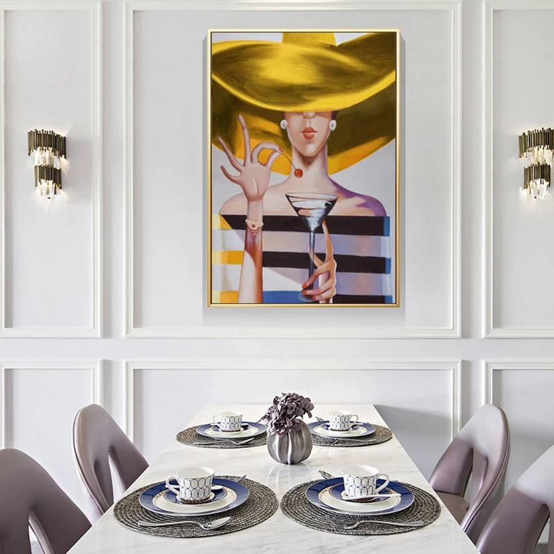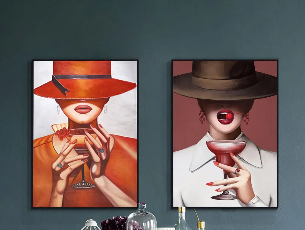 Модная женская холщовая Настенная картина с шапкой, современное пла...