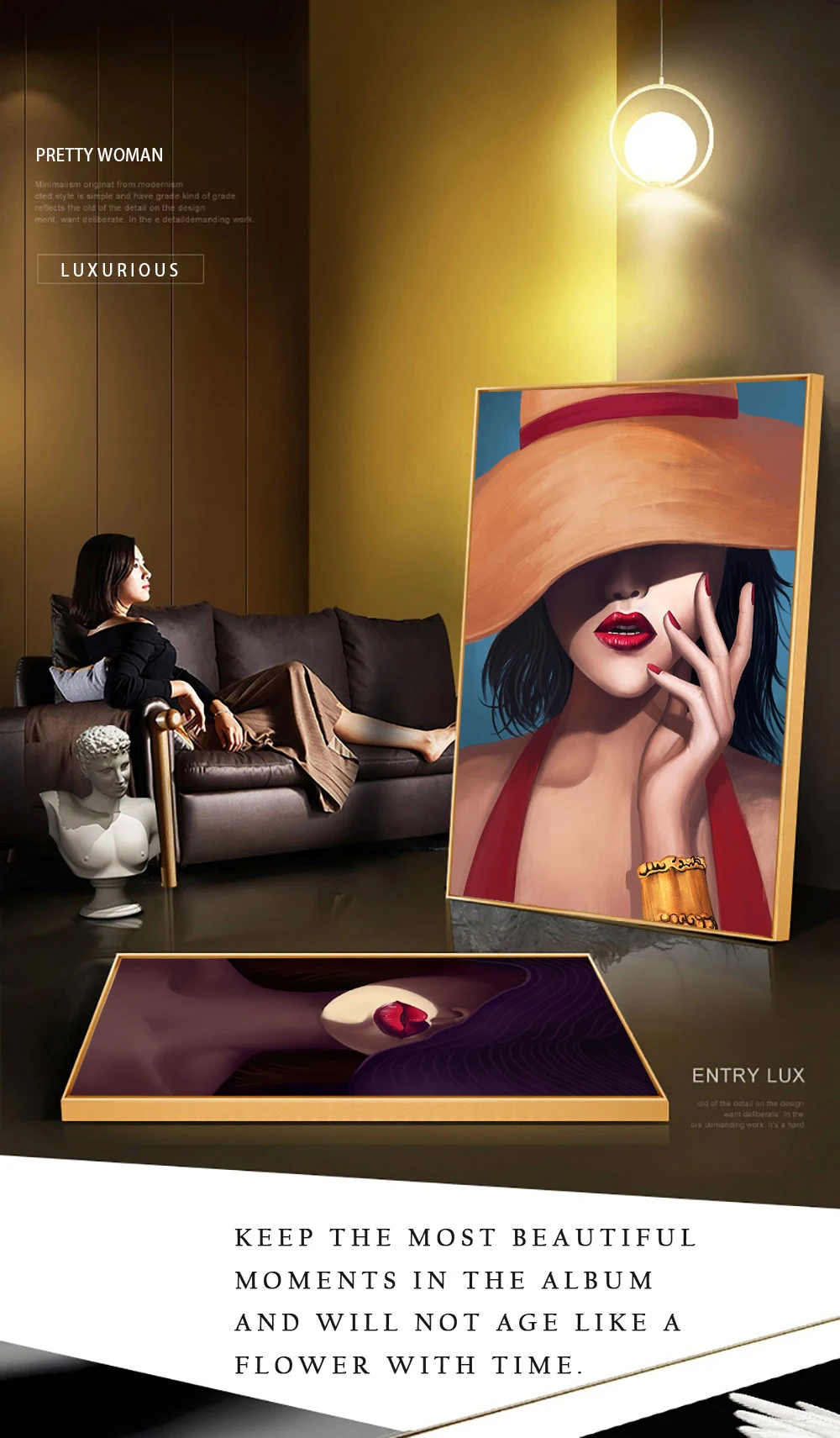 Большой размеры золотой губы современный портретный плакат печать н...