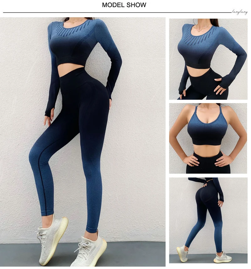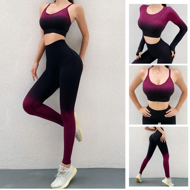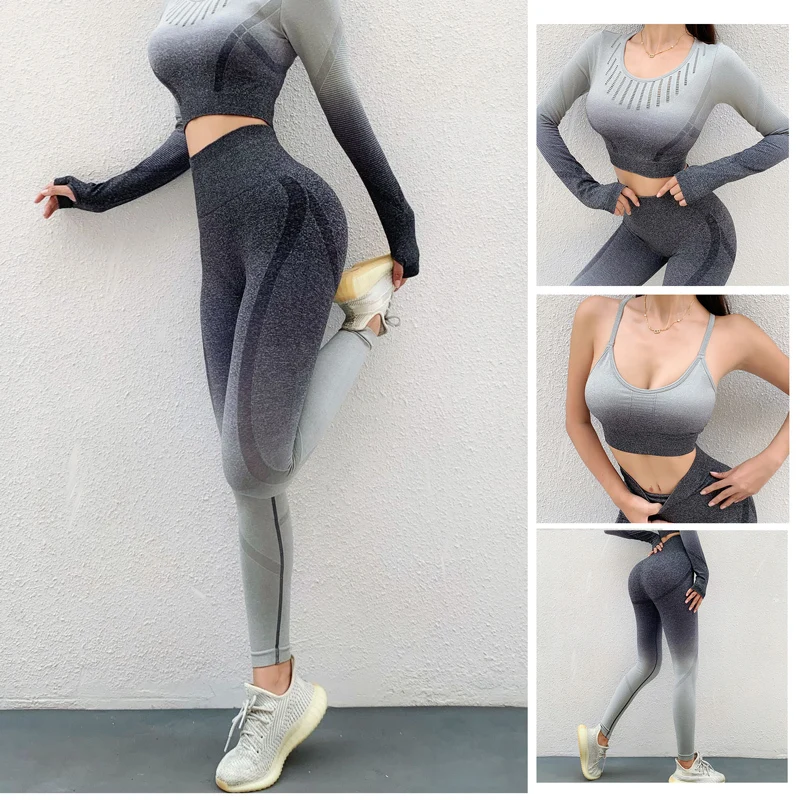 Спортивный комплект из 3 предметов для йоги, Женский бесшовный костюм для фитнеса, леггинсы для тренировок, женский укороченный топ и спортивный бюстгальтер, женский спортивный костюм