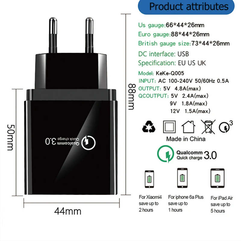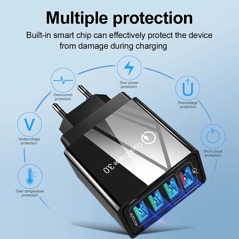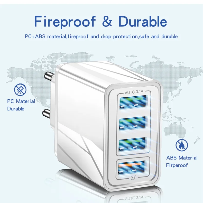 Зарядное устройство 18 Вт, 4USB, быстрая зарядка 3,0, зарядное устройство, настенное устройство для быстрой зарядки iPhone12, зарядное устройство для телефона Xiaomi, адаптер питания