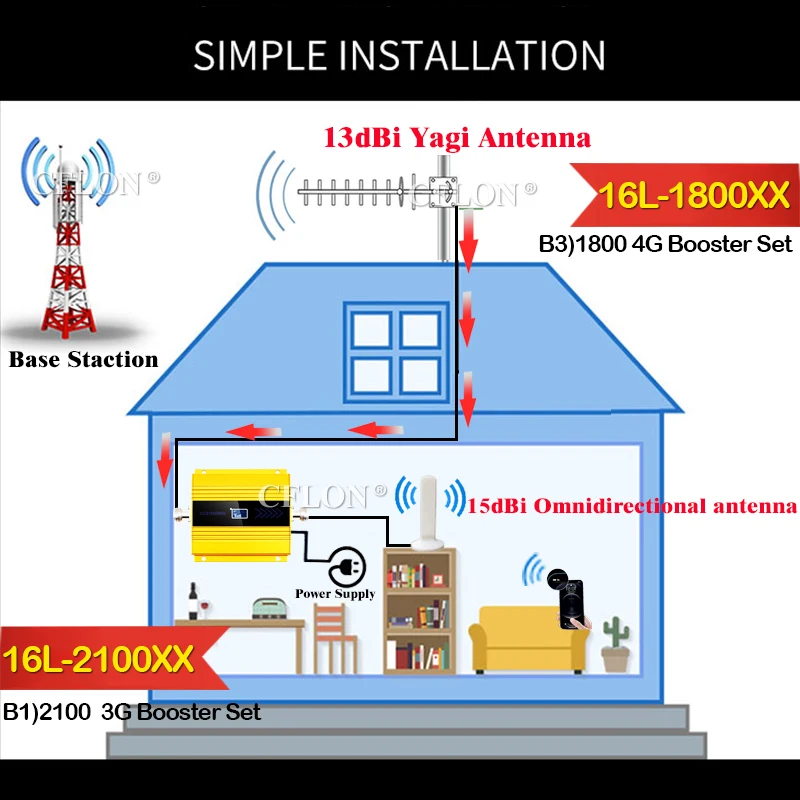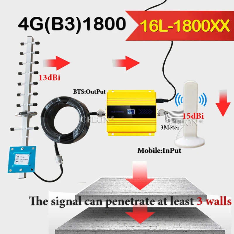 Что входит в комплект ----Только 1800 бустер = Band3 1800 + источник питания;16L-1800XX = усилитель сигнала LTE1800Mhz + антенна 13dBi Yagi + всенаправленная антенна 15dBi + кабель 10 метров + источник питания;