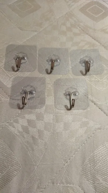 Вроде хорошие крючки. На кафель приклеился и 1кг держит спокойно. Выглядит нормально. Немного голубой оттенок (нежные цвета сделает грязными). Насчёт остальных заявленных качеств (водостойкий и многоразовый) не знаю. Доехало с нормальной скоростью.
