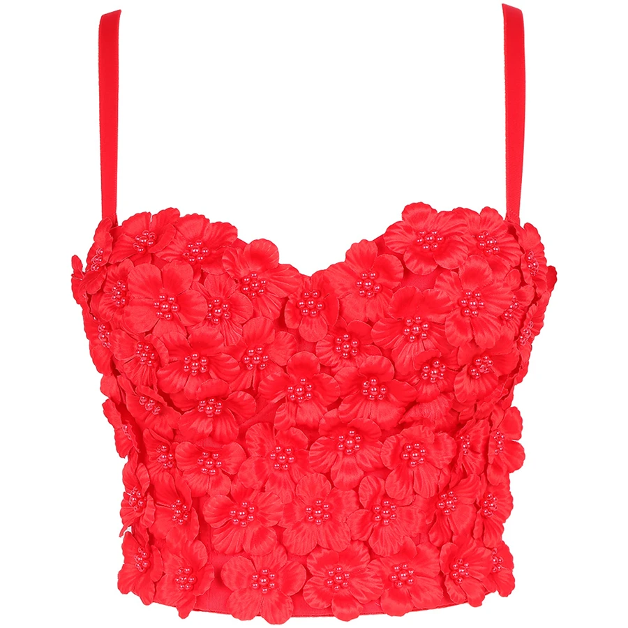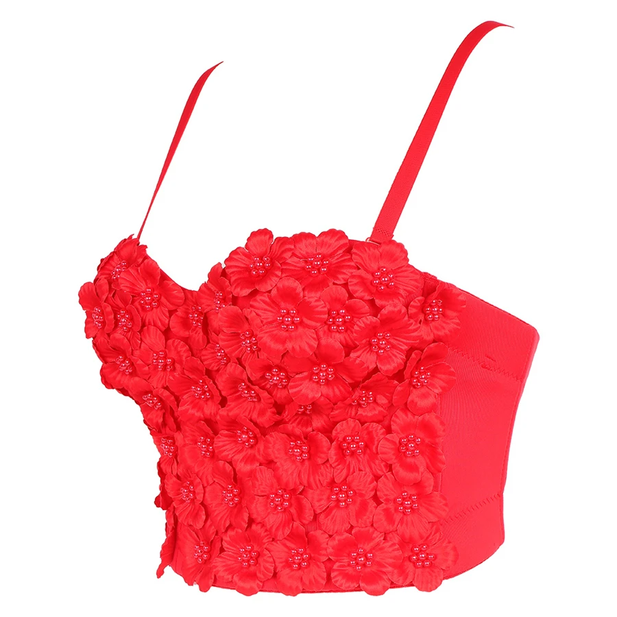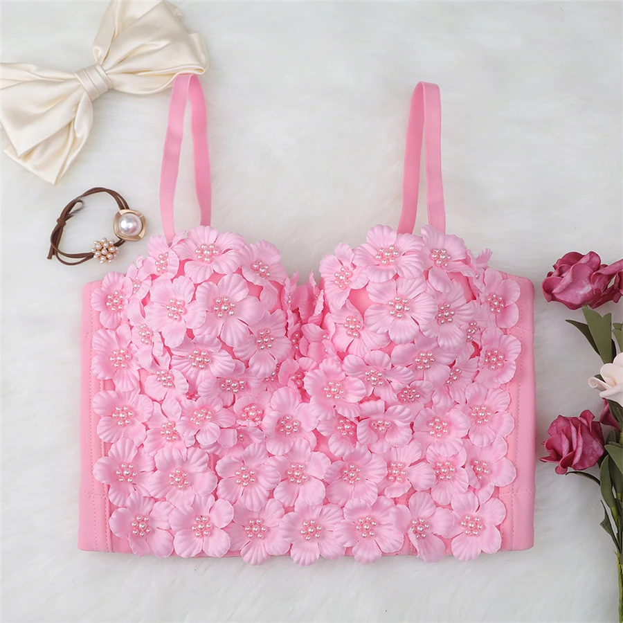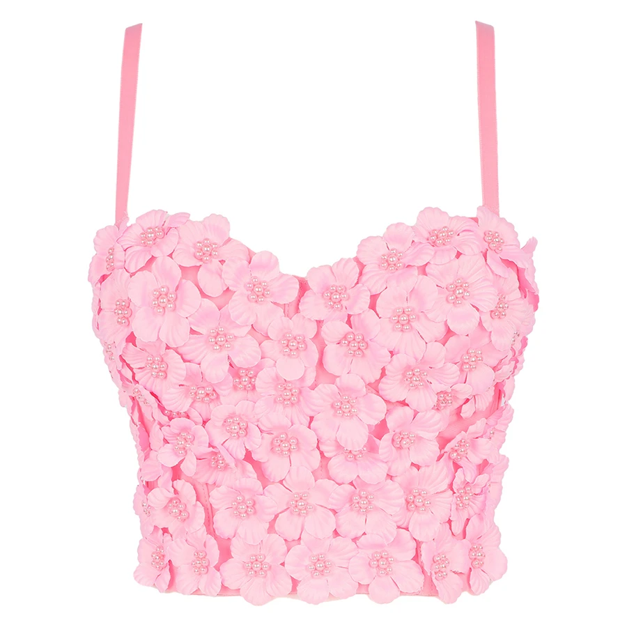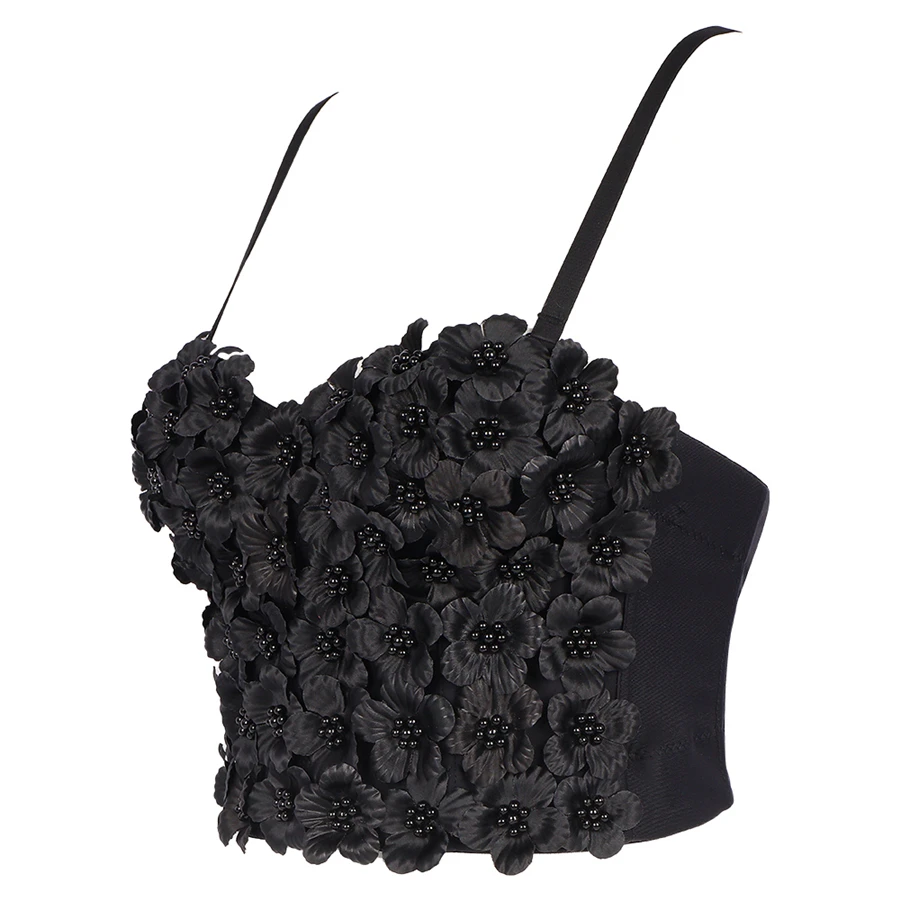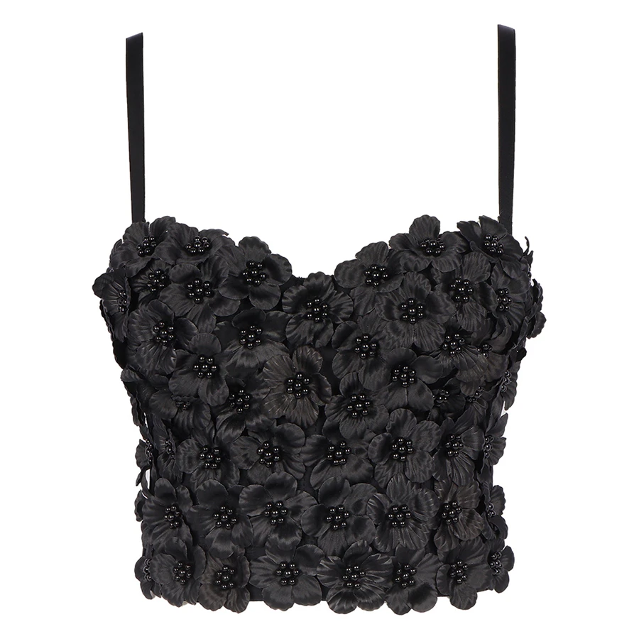 Женская одежда, сексуальный женский укороченный топ с цветочным бисером, Женский однотонный топ с открытой спиной в стиле Харадзюку, топы на бретелях со встроенным бюстгальтером пуш-ап, Бралетт