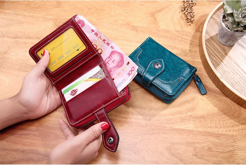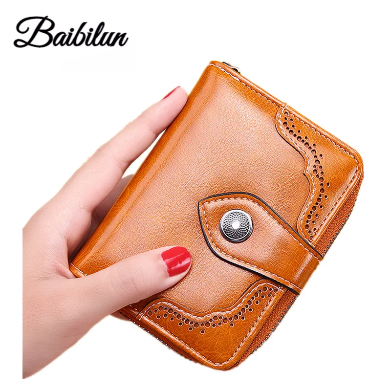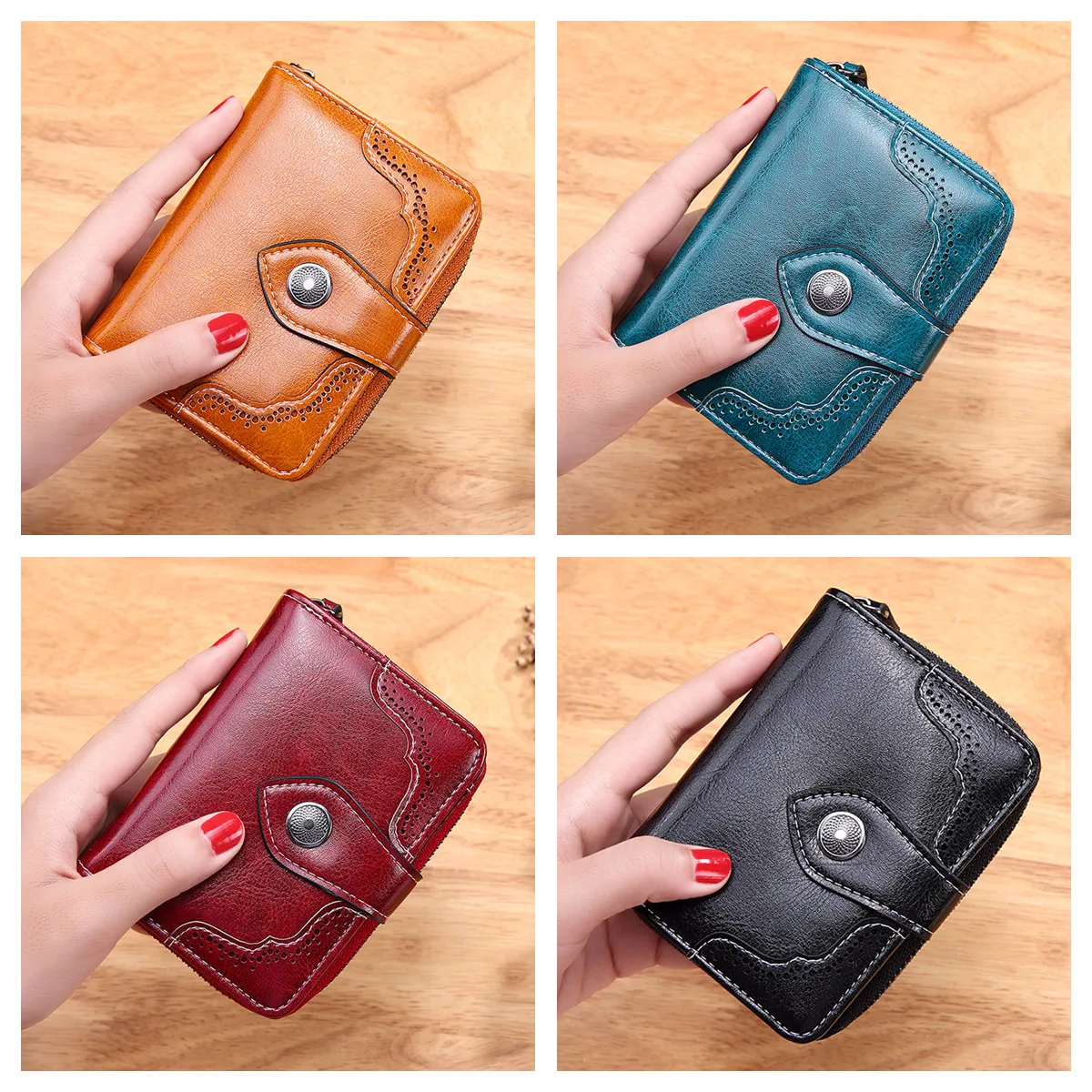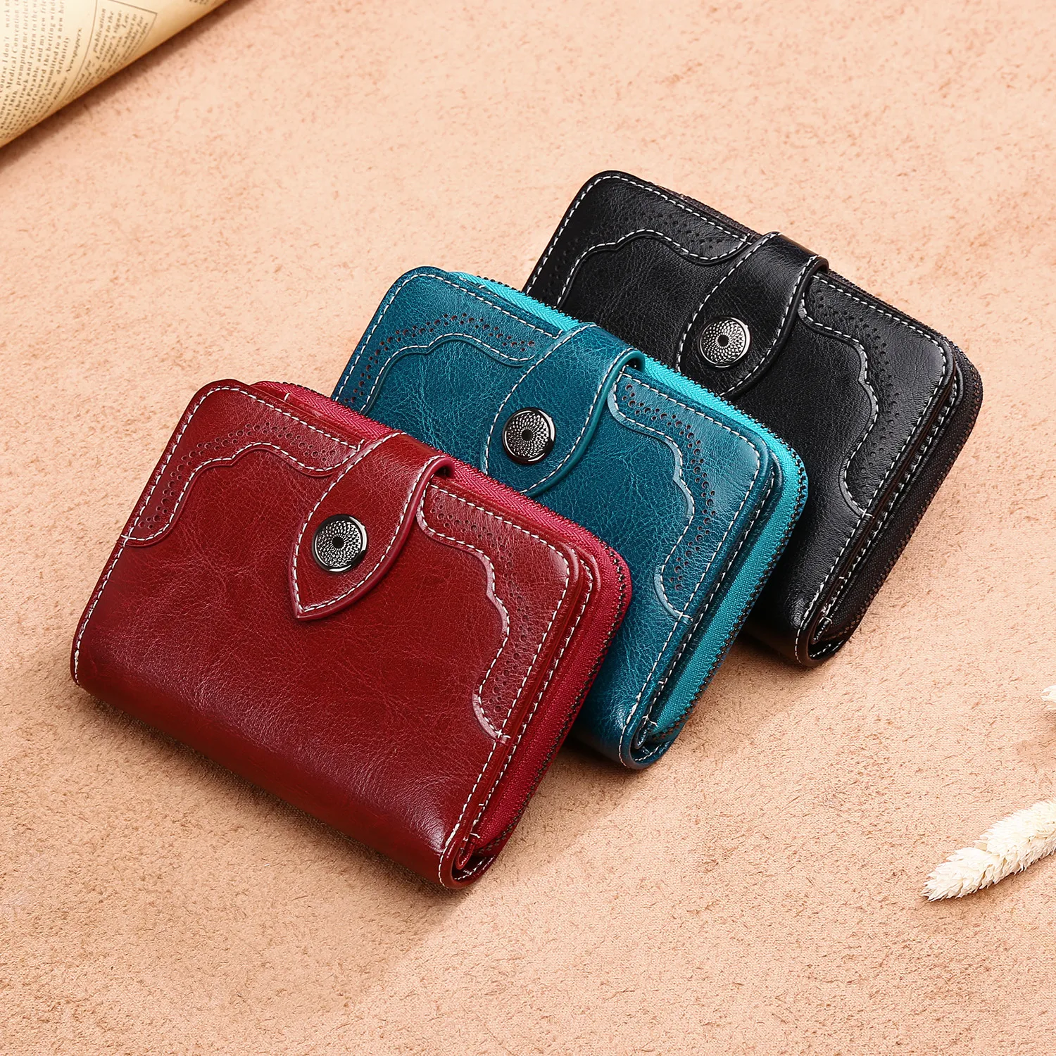 Женский кошелек в стиле ретро из вощеной кожи, женский короткий кошелек в европейском и американском стиле, Женский кошелек на молнии, Baibilun