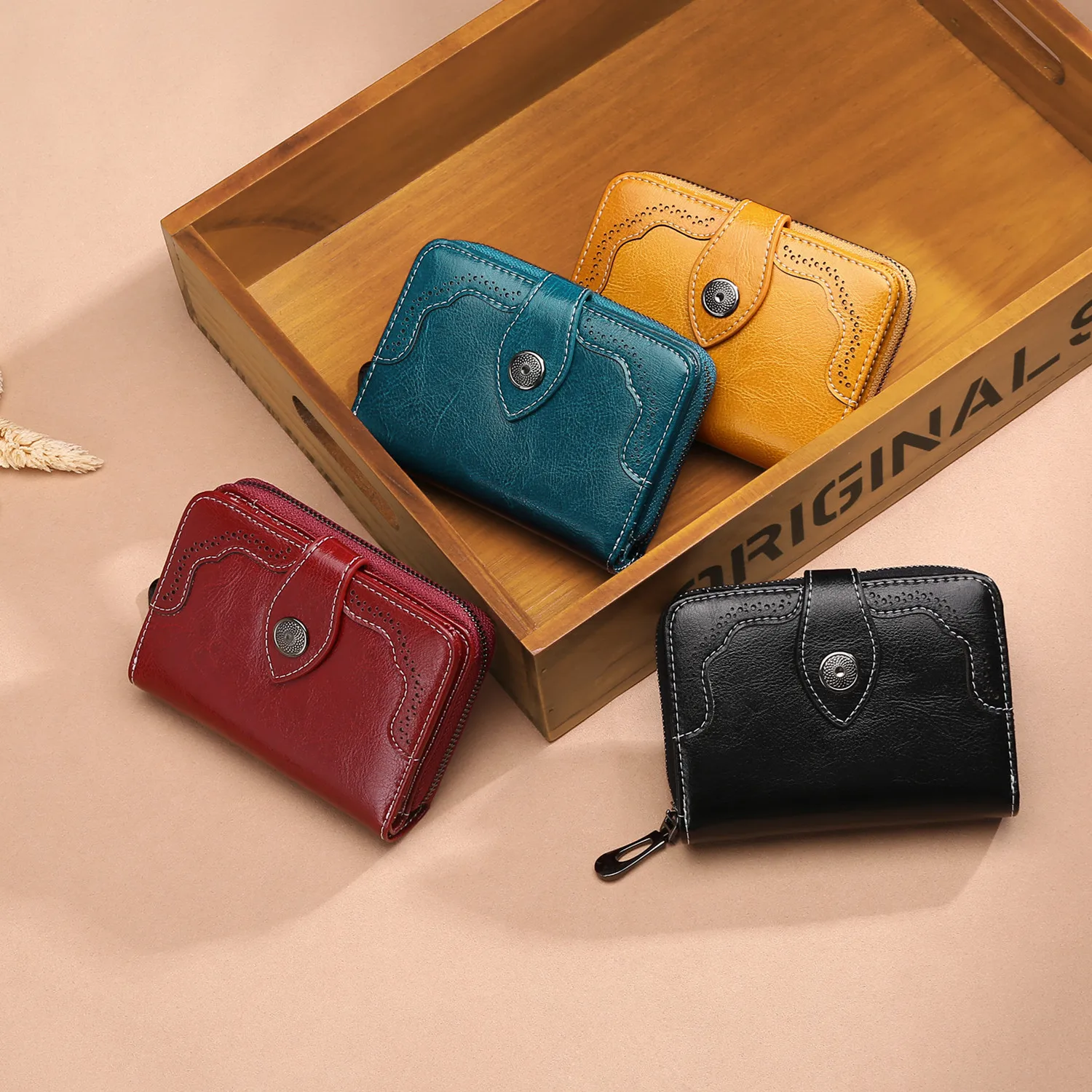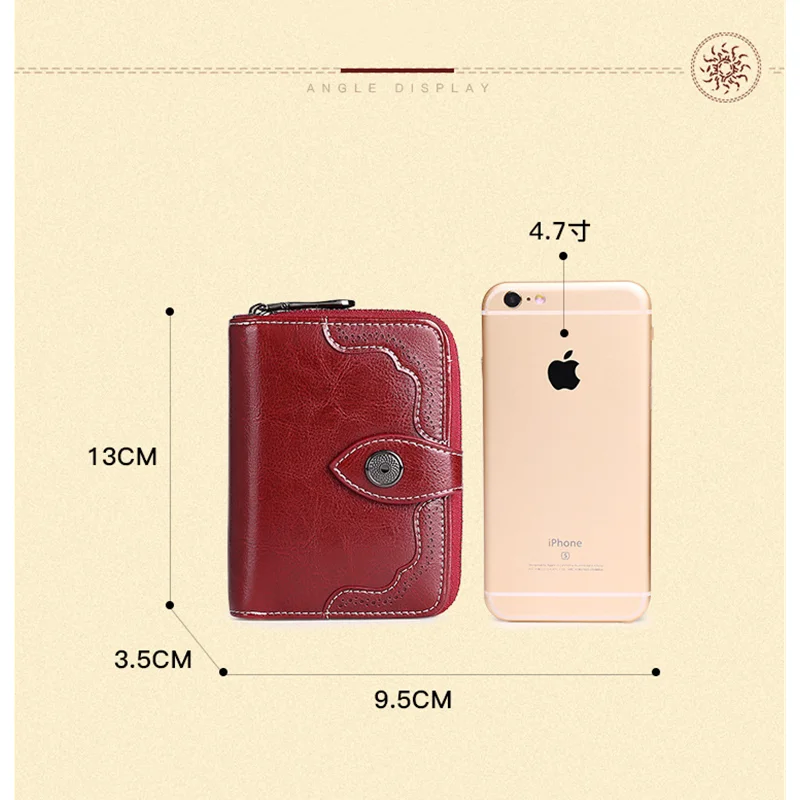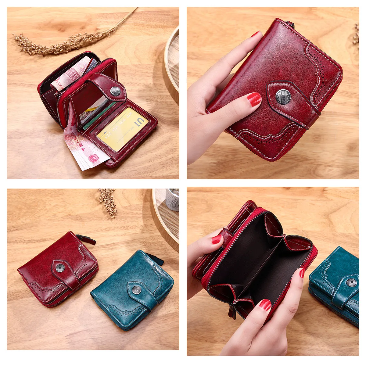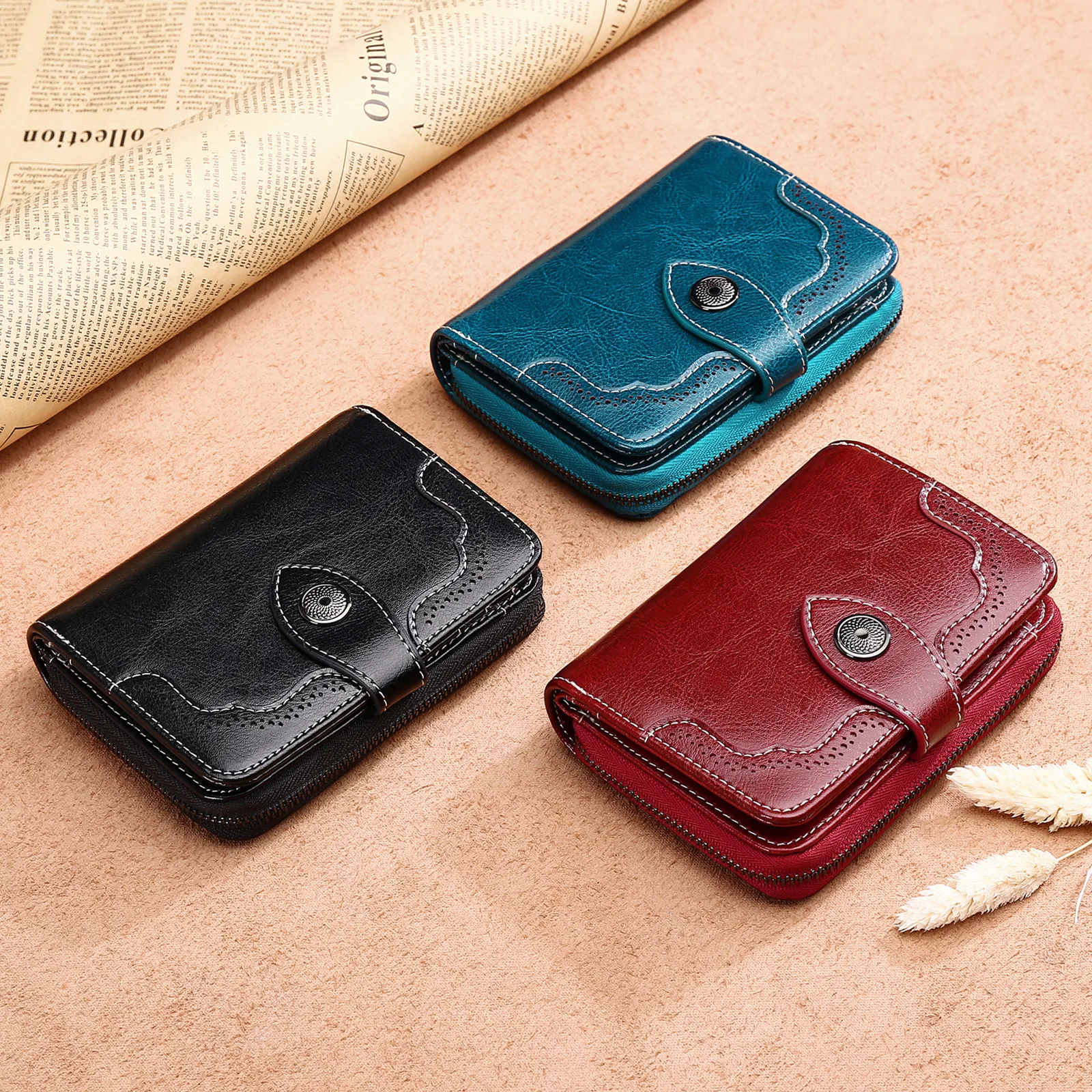Женский кошелек в стиле ретро из вощеной кожи, женский короткий кошелек в европейском и американском стиле, Женский кошелек на молнии, Baibilun