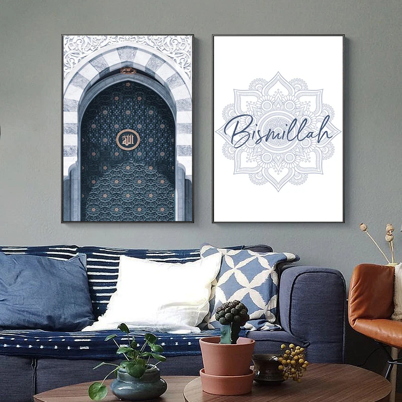 Мусульманский плакат на холсте, пейзаж, печать, религиозный декор, ...