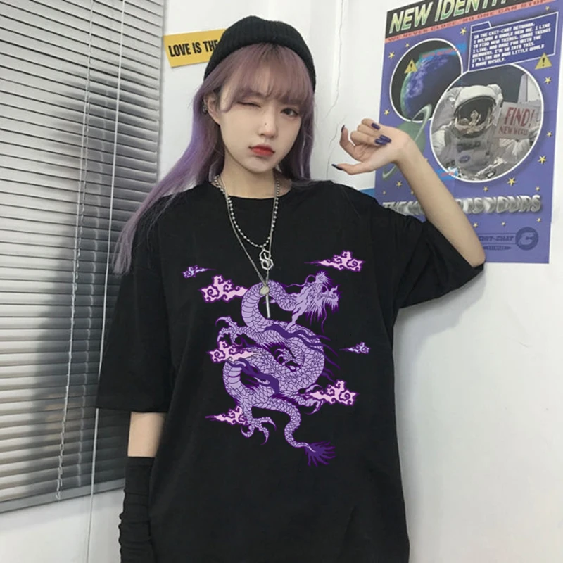 Футболка женская с принтом дракона, оверсайз, в стиле Харадзюку, ви...