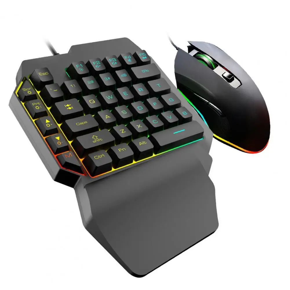 2 шт./компл. T1 эргономичный дизайн одной рукой USB цветная подсветка Проводная компьютерная игровая клавиатура мышь подходит для Genshin PUBG Описание: Благодаря дизайну plug and play мышь с компьютерной клавиатурой удобна в использовании. Благодаря эргономичному дизайну, увеличьте и Расширьте интегрированный упор на ладони, чтобы можно было поддерживать запястье. С четырехскоростным фотоэлектрическим датчиком DPI мышь также может точно определить местонахождение. Маленький размер легко носить с собой, но также экономит место. Изготовленная из АБС-пластика и металлического материала, клавиатура для компьютерной мыши отличается прочностью и длительным сроком службы. По замерам будет 23,5 см, 12,5 см; Ширины 18,5 см, 6,5 см. Он используется для любителей игр, деловых людей и людей, которые долгое время занимаются компьютерной работой. Название товара: клавиатура мышь Материал: АБС-пластик, металл Рабочее напряжение: 5 В Тип интерфейса: USB Модель: T1 Кабель Длина: 1,4 м Количество клавиш: 39 (клавиатура) Мышь DPI: 800/1200/1600/3200 DPI Информация о размере: Клавиатура: 23,5 см x 18,5 см/9,26 "x 7,29" (прибл.) Мышь: 12,5 см x 6,5 см/4,93 "x 2,56" (прибл.) Длина кабеля: 140 см/55,16 "(прибл.) Примечания: Благодаря светильник и экрана Цвет Товара может быть s светильник ly отличается из-за характеристик монитора компьютера. Возможны незначительные отклонения в размерах из-за различных измерений вручную. Посылка включает в себя: 1 х Мышь 1 X клавиатура