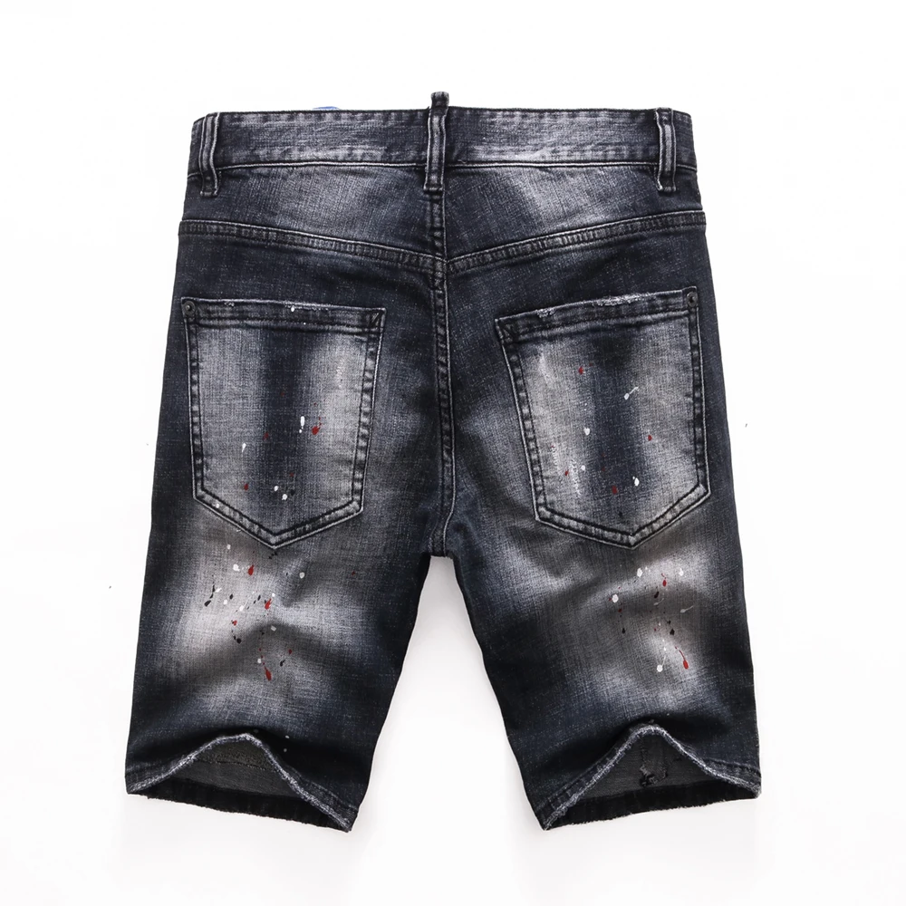 Мужские джинсовые шорты на молнии dsq, черные облегающие эластичные шорты с дырками, лето 2021