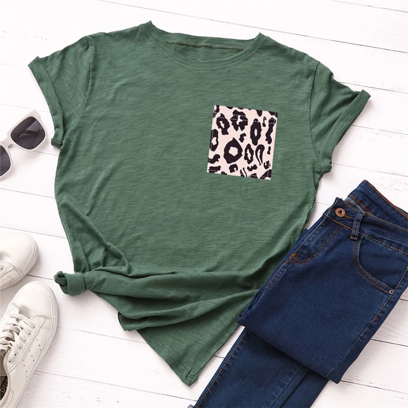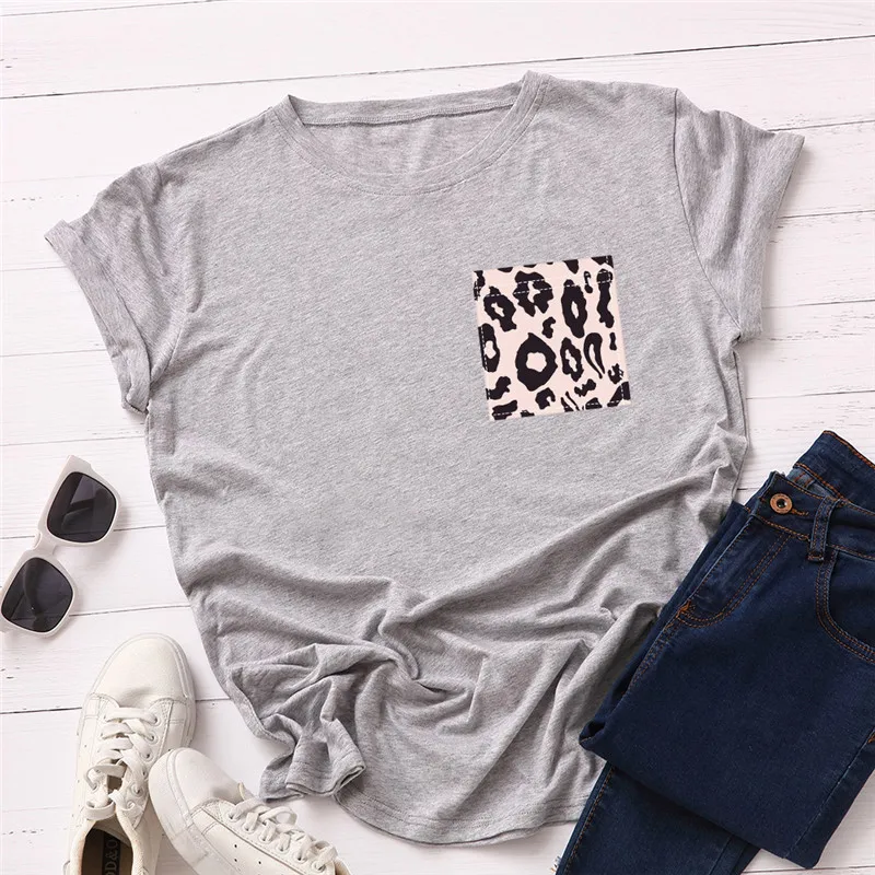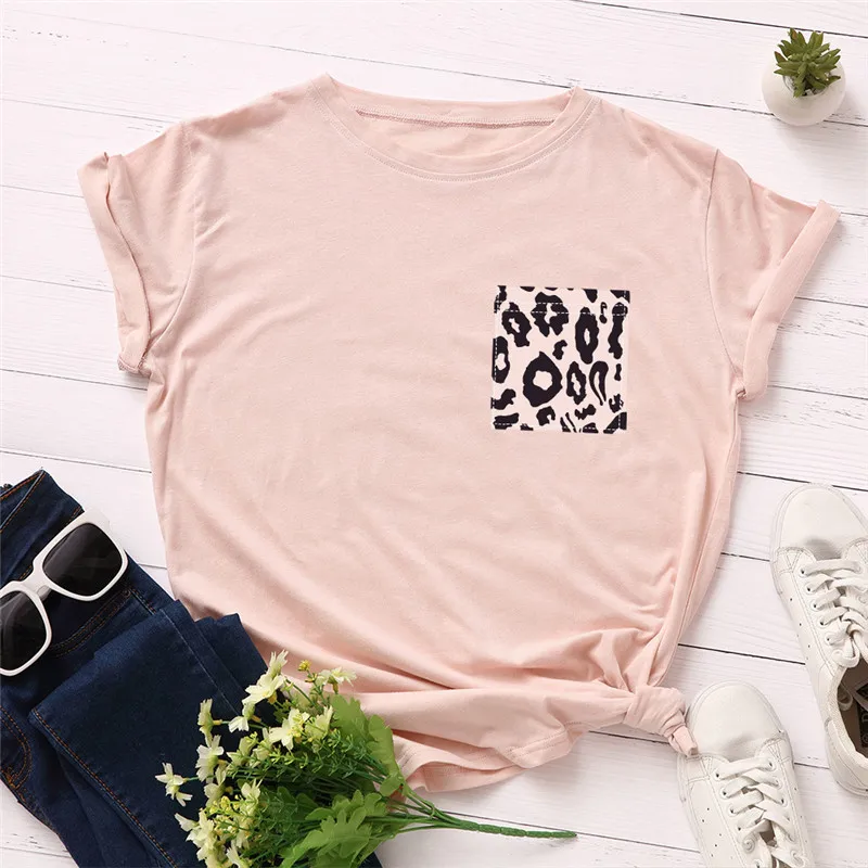 Женская футболка с круглым вырезом и коротким рукавом, с леопардовым принтом