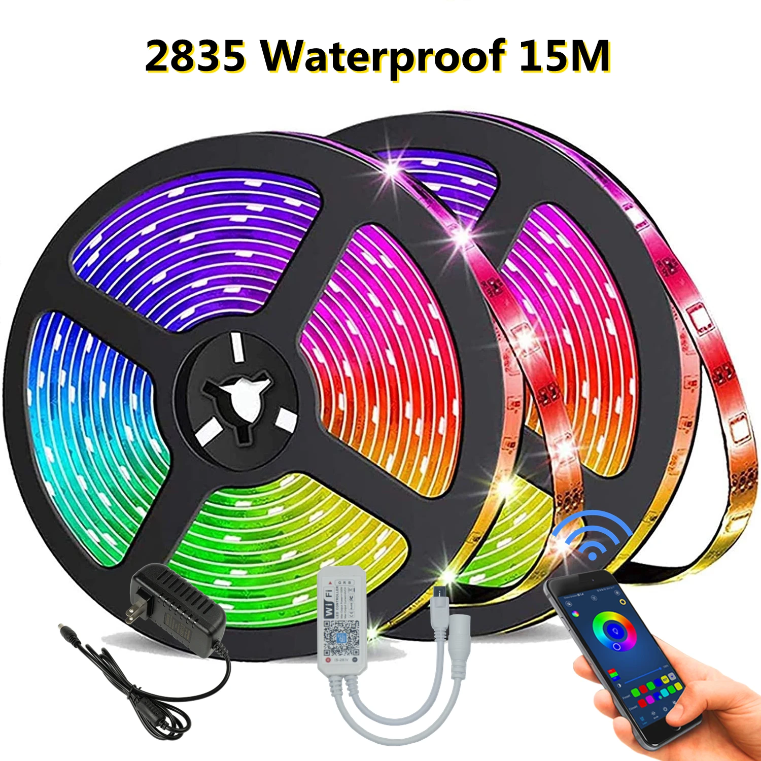 RGB 5050 15 м Светодиодная лента комплект Wifi Пульт дистанционного управления изменение цвета светодиодный светильник подходит для украшения спальни дома кухни