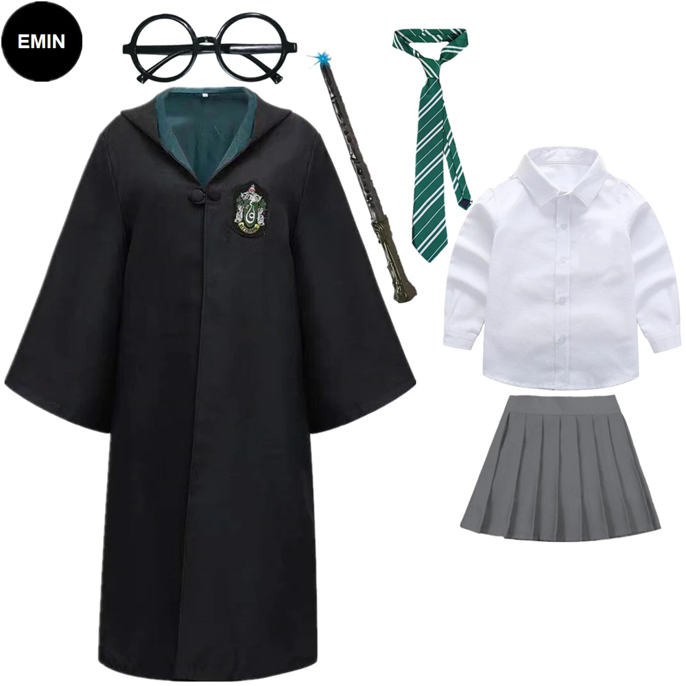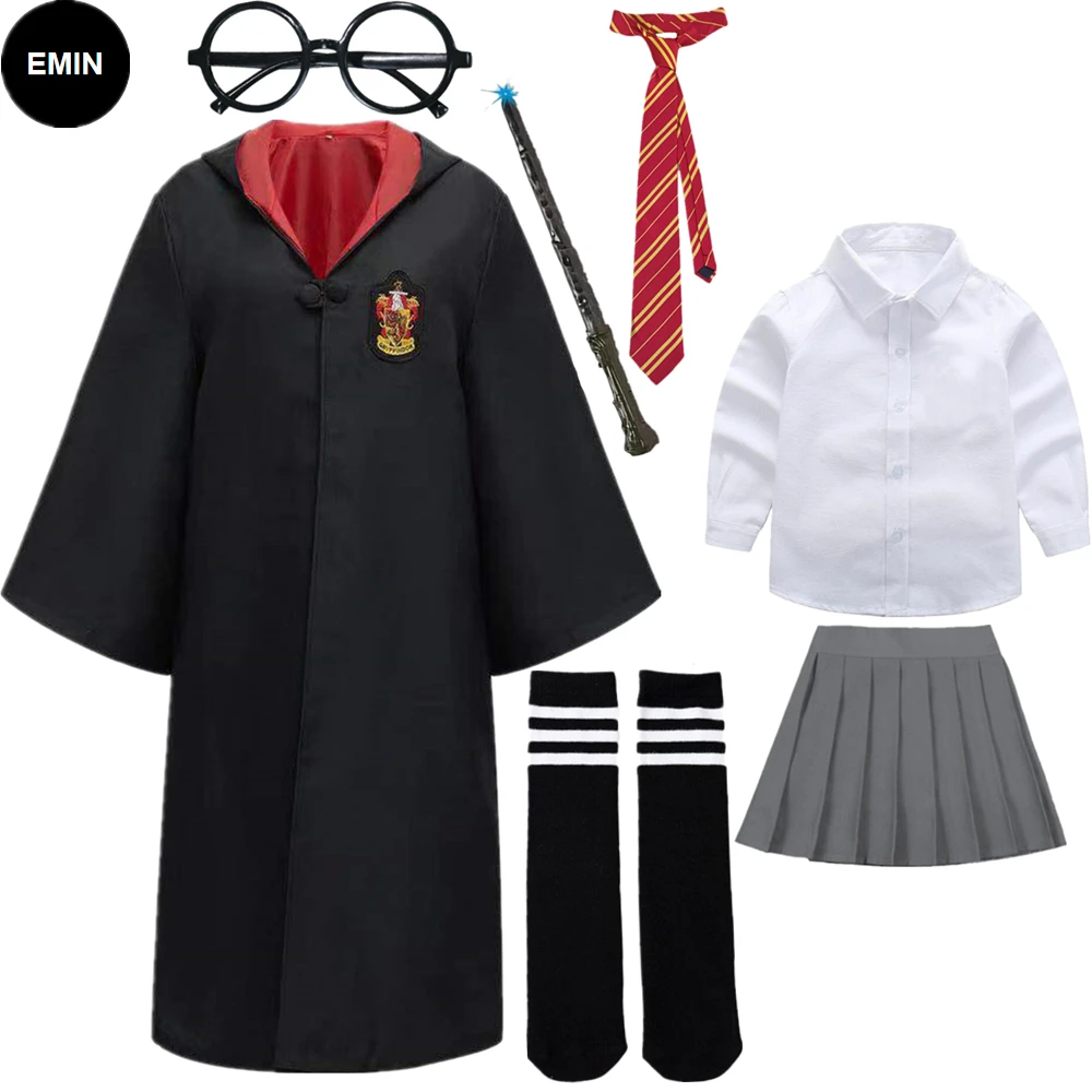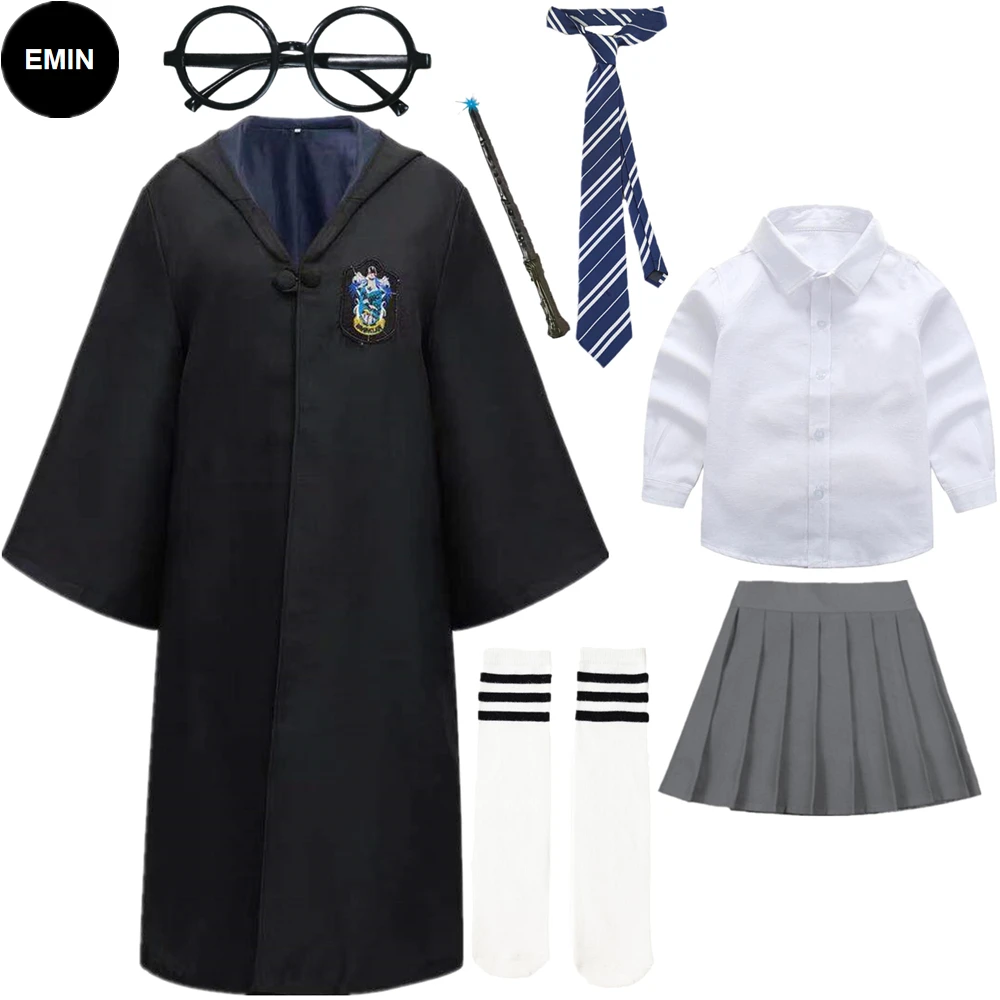 Костюм волшебника накидка из фильма для косплея для девочек, рубашка, юбка, галстук, оправа для очков, палочка, носок, платье на Хэллоуин, Рождество, карнавал вечерние ринку