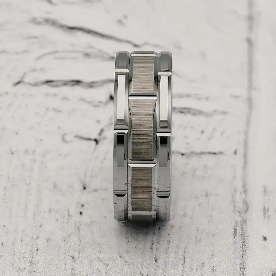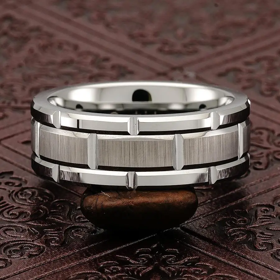 Современное мужское кольцо 8 мм из нержавеющей стали серебряного цвета с матовым двойным узором, мужское обручальное кольцо, вечерние ювелирные изделия для женщин, подарочные украшения