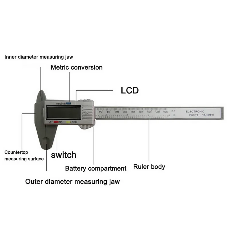 Цифровой Штангенциркуль с металлическим корпусом из нержавеющей стали, измерительный инструмент 0-150 мм, цветной ЖК-дисплей, электронный УГЛЕРОДНЫЙ