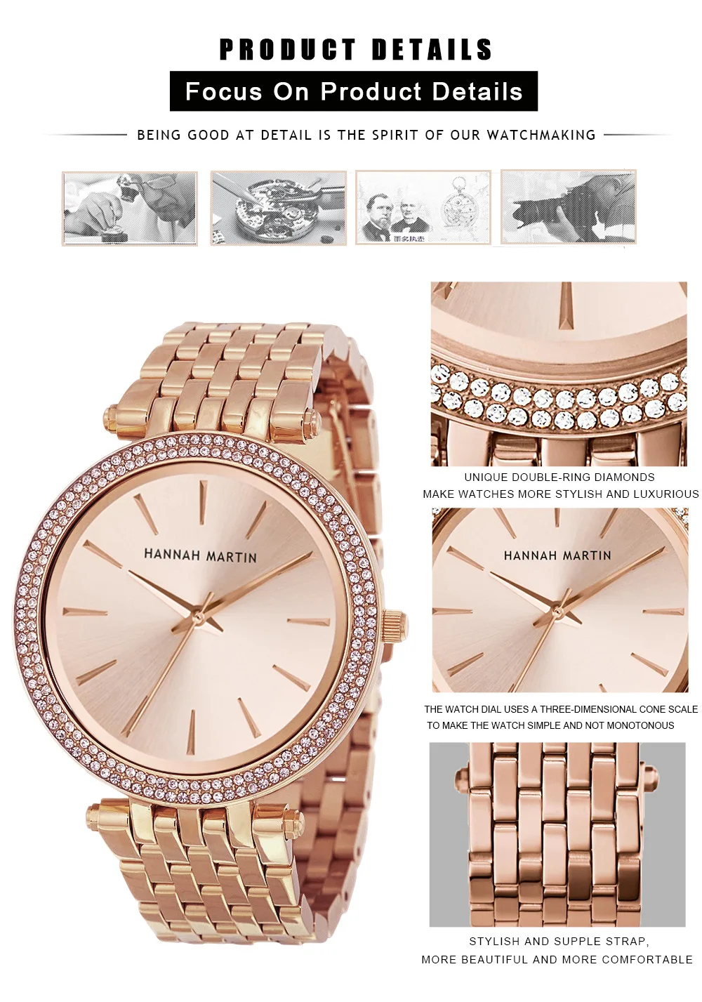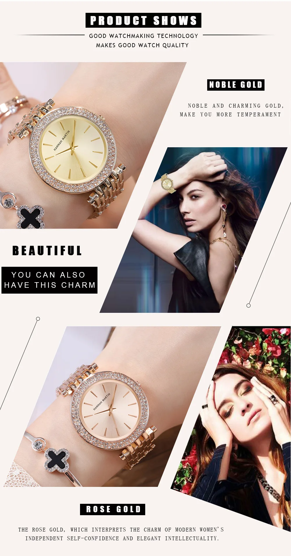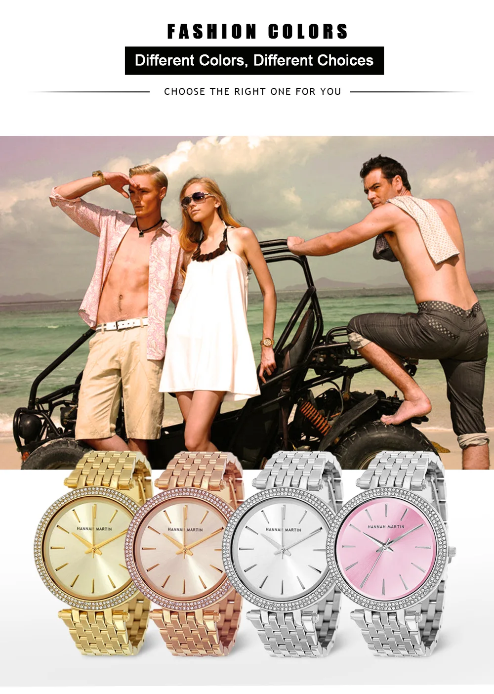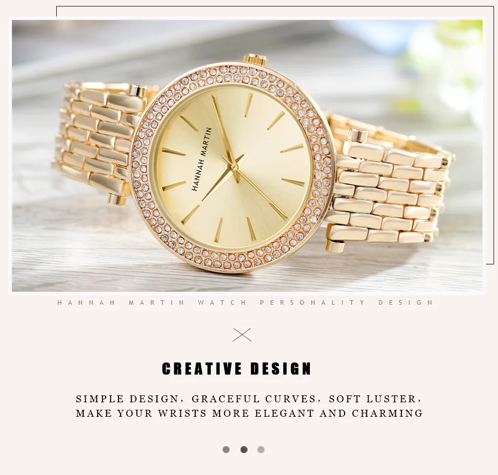 Лидер продаж, высококачественные золотые часы Hannah Martin с бриллиантовой рамкой, женские модные кварцевые наручные часы с инкрустацией бриллиантами