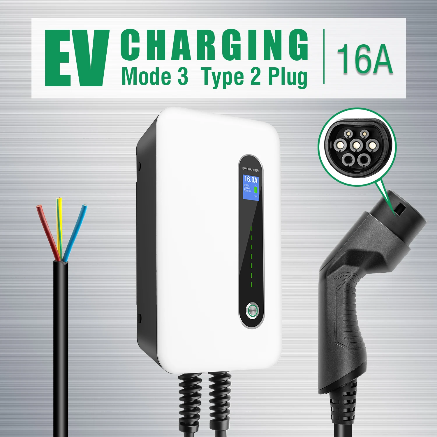 Зарядная станция для 16A Тип 2 электрический автомобиль Зарядное устройство EVSE Wallbox зарядный кабель IEC 62196-2 уровня 2 Зарядное устройство 3.6KW
