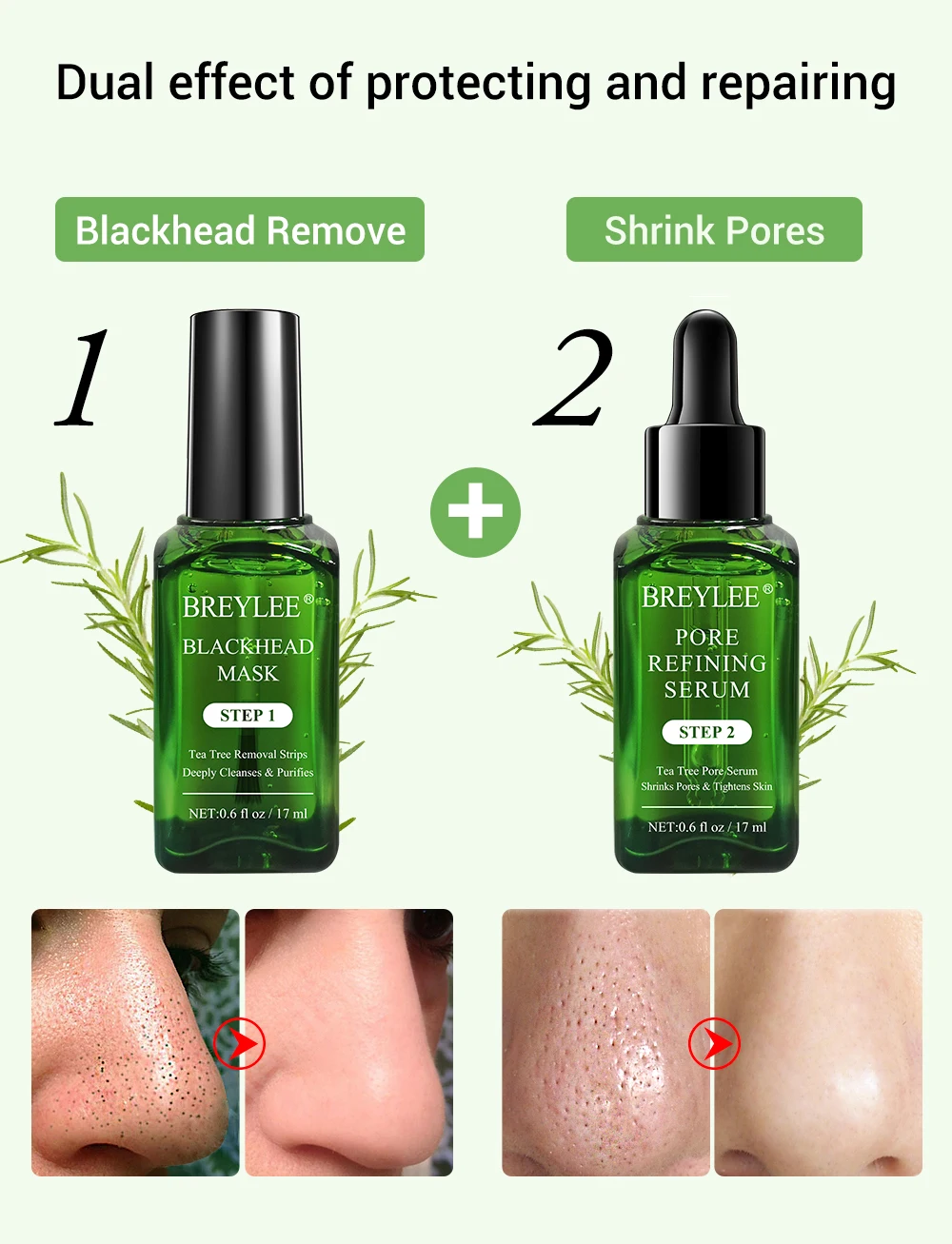Сыворотка для удаления черных точек с чайного дерева BREYLEE, сыворотка для сужения пор, маска для пилинга с контролем жирности, отбеливающая маска для лица, уход за кожей