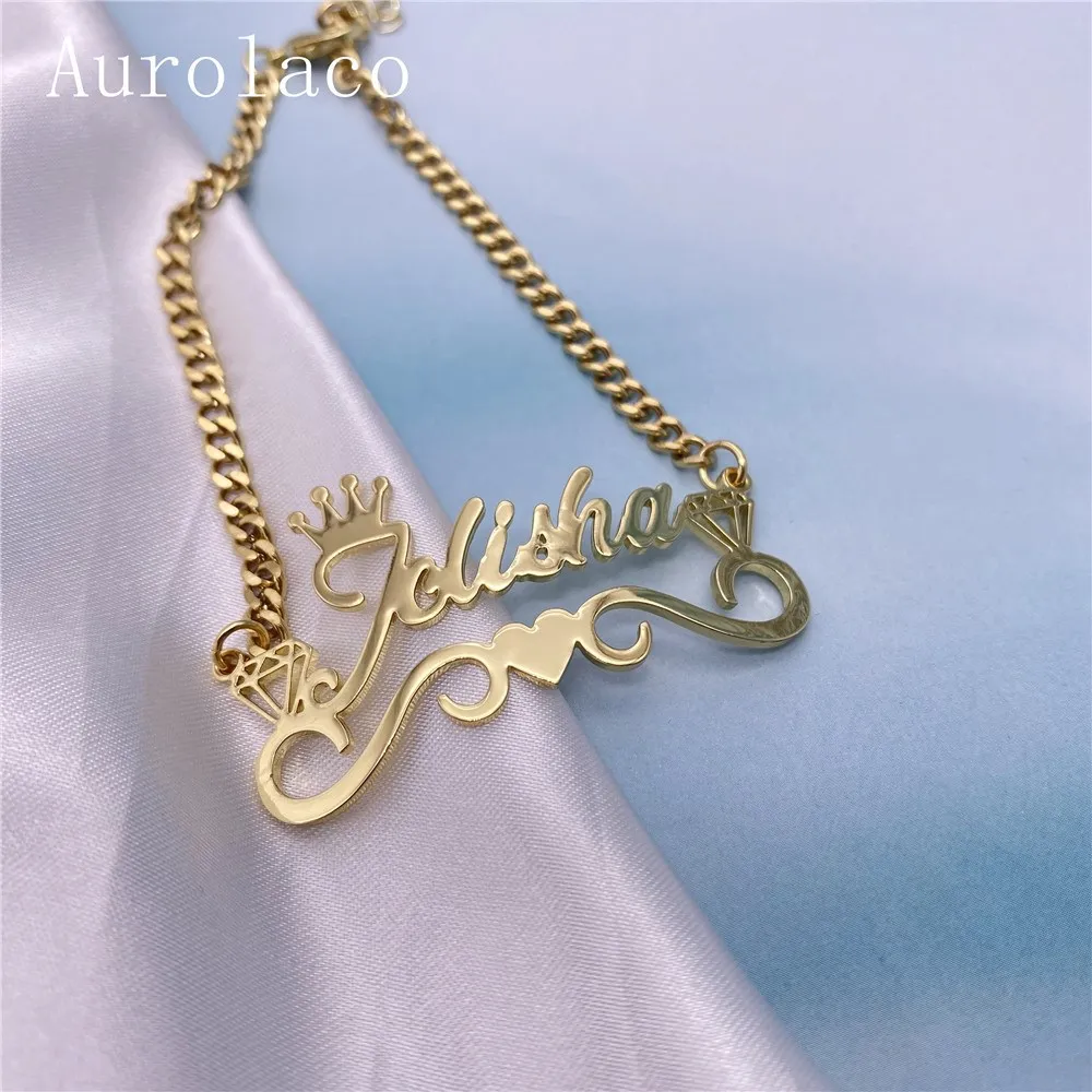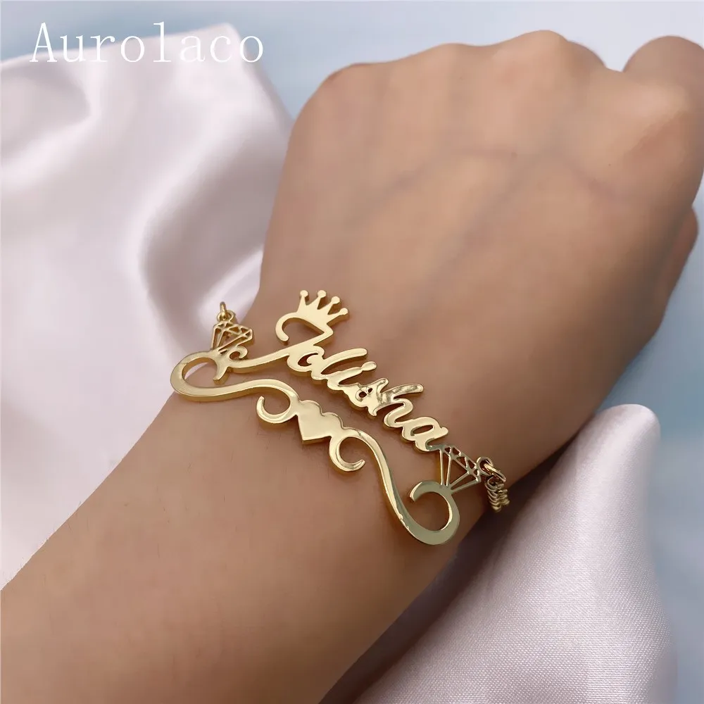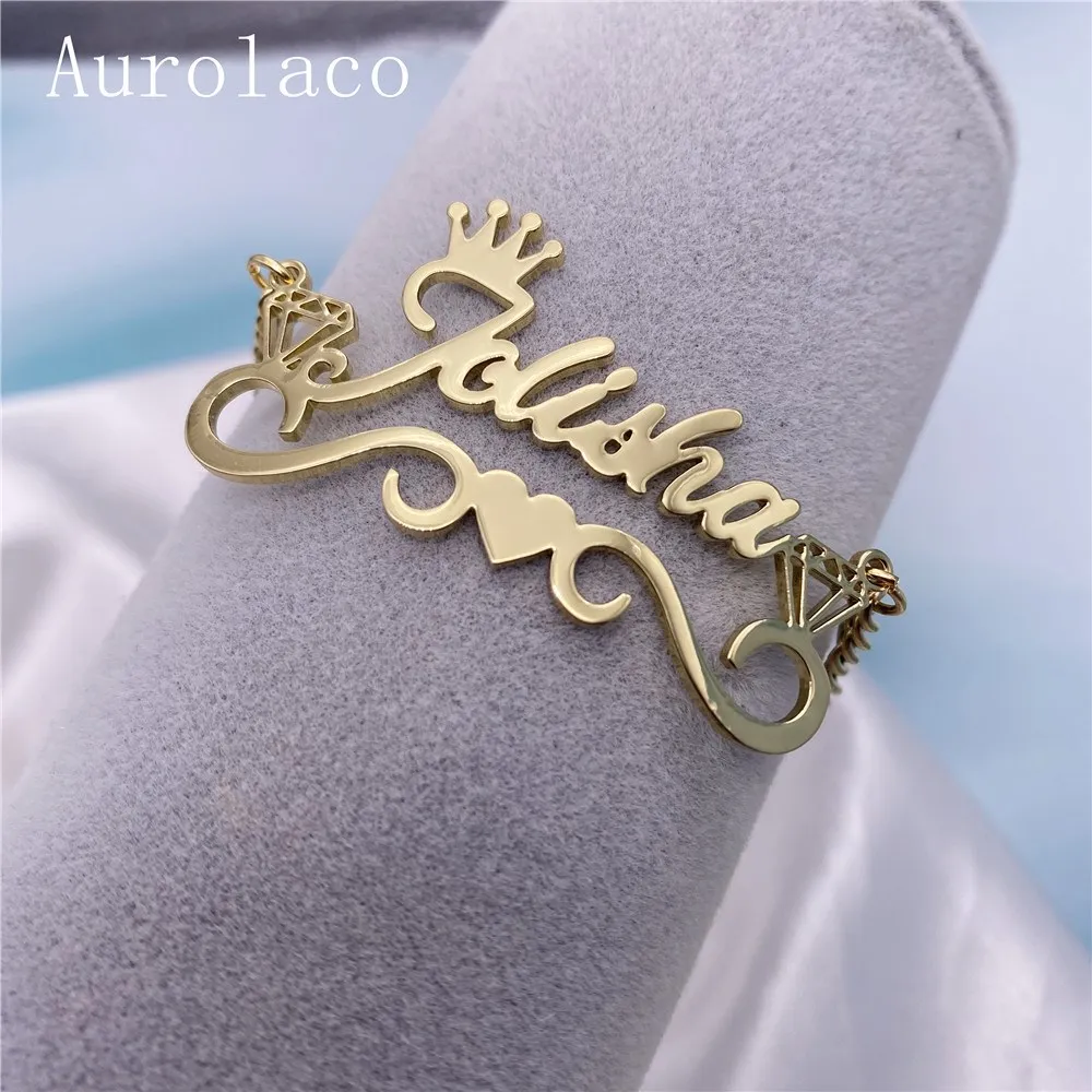 AurolaCo именной браслет с сердцем, браслет из нержавеющей стали, браслет с шармами, Женский индивидуальный ювелирный подарок для девушки