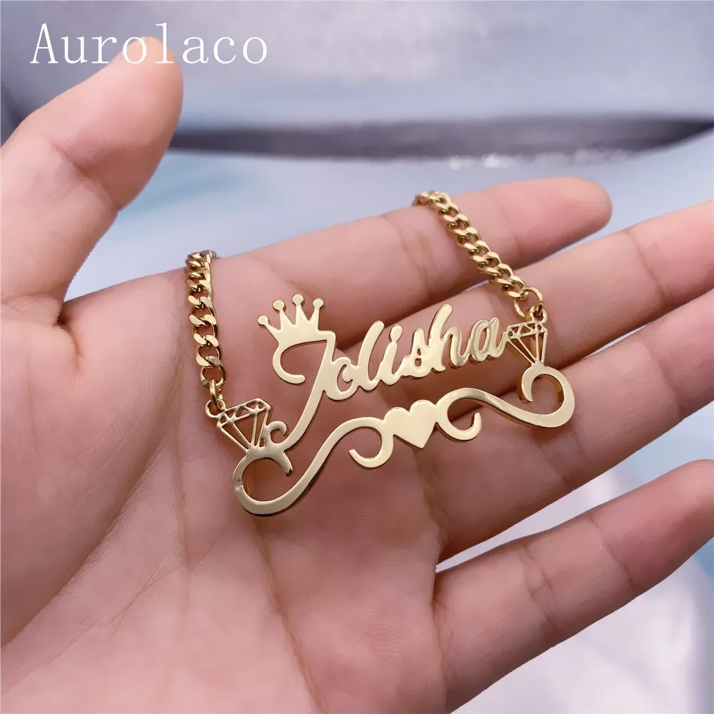 Ожерелье AurolaCo с именем на заказ с короной, ожерелье с кубинской...